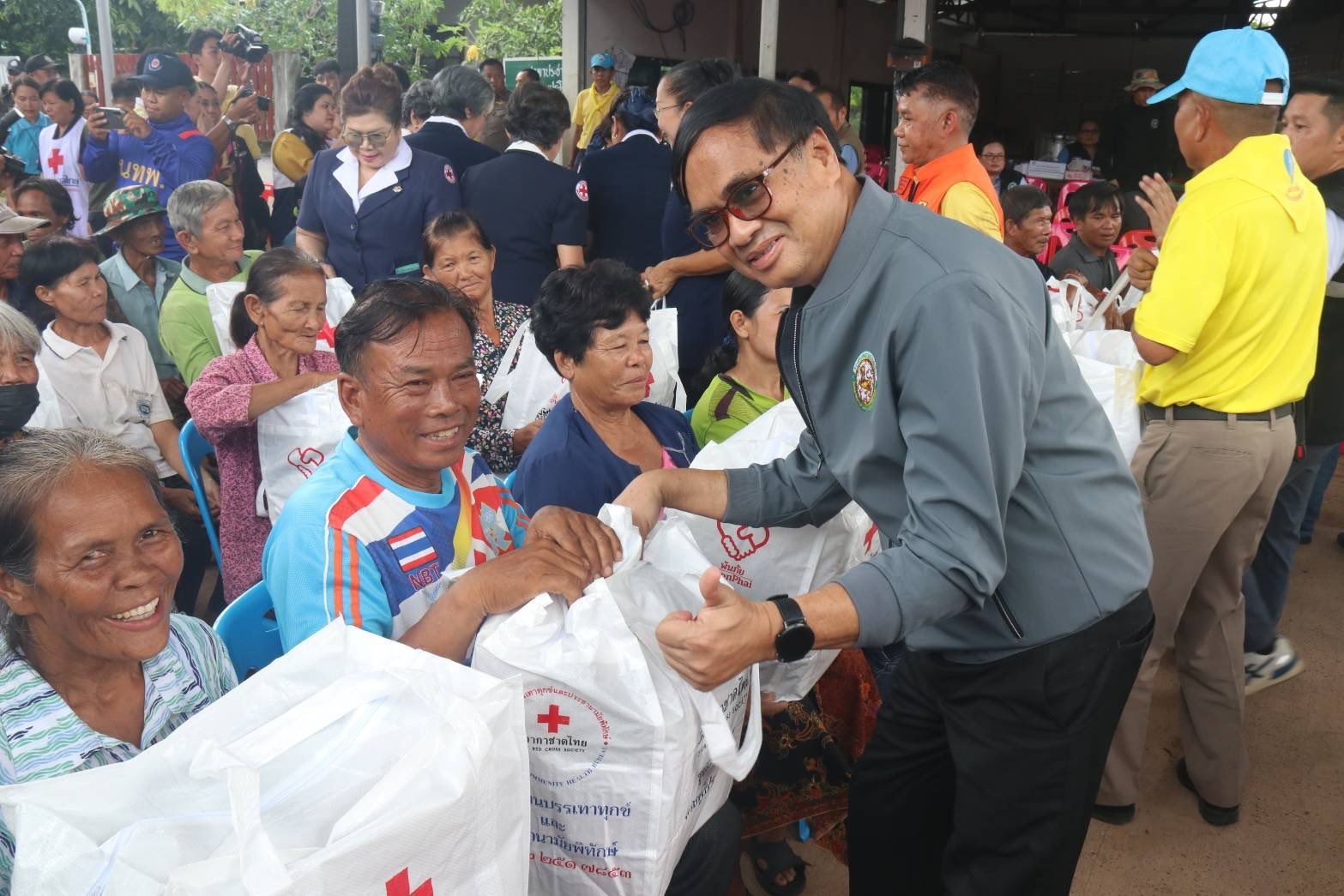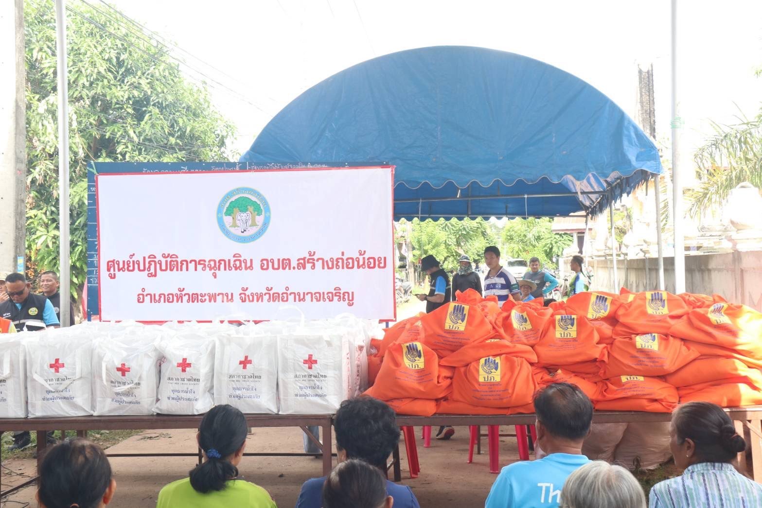 อบจ.อำนาจเจริญ ร่วมให้กำลังใจและมอบชุดธารน้ำใจ สภากาชาดไทย เพื่อช่วยเหลือผู้ประสบวาตภัย ในพื้นที่ตำบลสร้างถ่อน้อย อำเภอหัวตะพาน จังหวัดอำนาจเจริญ