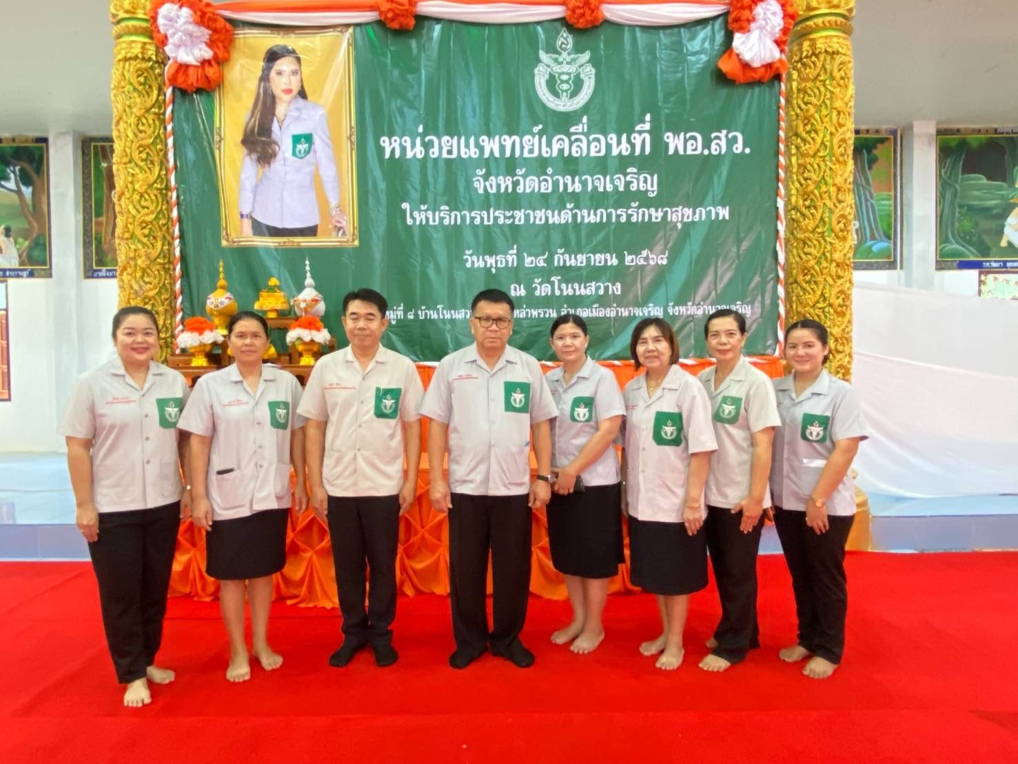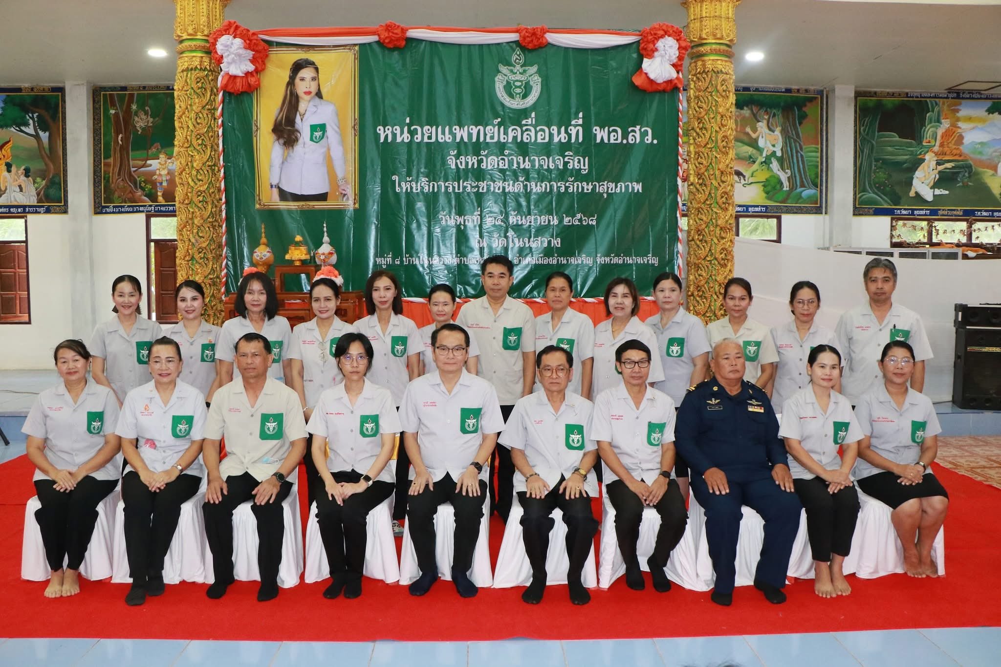 วันนี้ (24 ก.ย.68) เวลา 09.00 น. นายพนัส พันธุ์วรรณ นายก อบจ.อำนาจเจริญ มอบหมายให้นายบุญชู จารุจิตร รองนายก อบจ.อำนาจเจริญ ร่วมออกหน่วยแพทย์เคลื่อนที่ พอ.สว.จังหวัดอำนาจเจริญ ออกให้บริการประชาชนด้านการสาธารณสุข โดยมีนายณรงค์ เทพเสนา ผู้ว่าราชการจังหวัดอำนาจเจริญ เป็นประธานในพิธี ที่บริเวณภายในวัดบ้านโนนสวาง หมู่ที่ 8 ตำบลเหล่าพรวน อำเภอเมืองอำนาจเจริญ