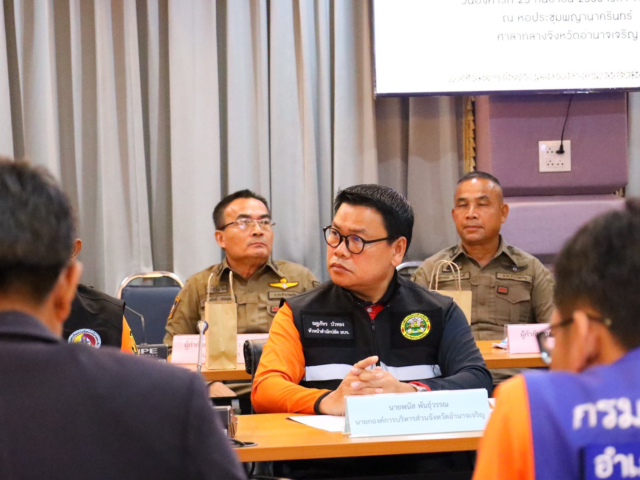 วันที่ 25 กันยายน 2568 เวลา 13.30 น. นายพนัส พันธุ์วรรณ นายกองค์การบริหารส่วนจังหวัดอำนาจเจริญ มอบหมายให้นายณฐภัทร บัวทอง หัวหน้าสำนักปลัด อบจ.อำนาจเจริญ เข้าร่วมประชุมคณะกรรมการอำนวยการศูนย์อำนวยการป้องกันและปราบปรามยาเสพติดจังหวัดอำนาจเจริญ เพื่อร่วมกันหารือ วางแนวทาง และกำหนดมาตรการในการป้องกันและแก้ไขปัญหายาเสพติดในพื้นที่จังหวัดอำนาจเจริญให้เกิดประสิทธิภาพสูงสุด โดยมีนายเทพรัตน์ ตันตะยานนท์ รองผู้ว่าราชการจังหวัดอำนาจเจริญ เป็นประธานการประชุม ณ ห้องประชุมพระมงคลมิ่งเมือง ชั้น 4 ศาลากลางจังหวัดอำนาจเจริญ
