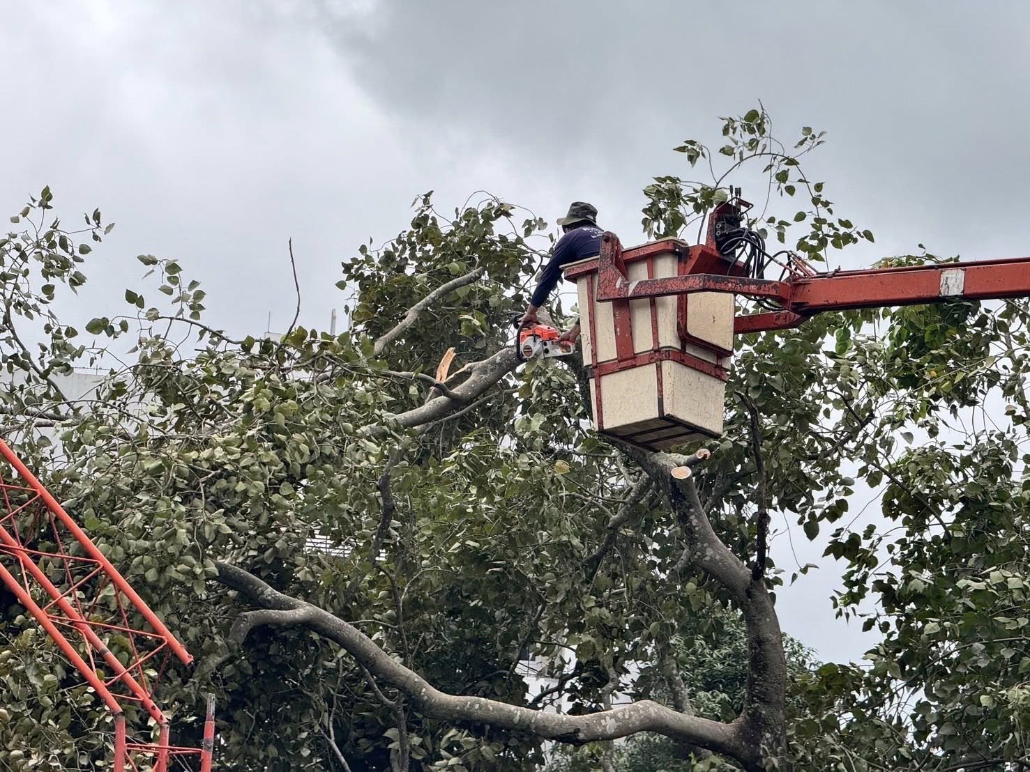 อบจ.อำนาจเจริญ เร่งตัดต้นไม้ที่ล้มโค่น หลังฝนตกหนักเนื่องจากอิทธิพลของพายุบัวลอย