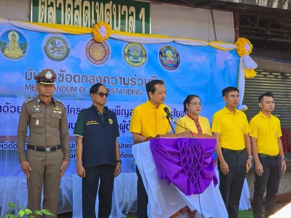 วันที่ 22 ตุลาคม 2568 เวลา 08.30 น. ณ ตลาดเช้าเทศบาลเมืองอำนาจเจริญ จังหวัดอำนาจเจริญ นายอนุรัตน์ ธรรมประจำจิต ผู้ว่าราชการจังหวัดอำนาจเจริญ ร่วมเป็นสักขีพยาน ลงนามบันทึกข้อตกลงความร่วมมือ ว่าด้วยการดำเนินโครงการบำเพ็ญสาธารณประโยชน์และพัฒนาชุมชนของผู้ต้องขังระหว่าง อบจ.อำนาจเจริญ กับ เรือนจำจังหวัดอำนาจเจริญ และเทศบาลเมืองอำนาจเจริญ โดย นายพนัส พันธุ์วรรณ นายก อบจ.อำนาจเจริญ นายนาวิน แก้วจันทร์ ผบ.เรือนจำจังหวัดอำนาจเจริญ นายถวัลย์ นิยมพานิชพัฒนา นายกเทศมนตรีเมืองอำนาจเจริญลงนาม MOU ร่วมกันในครั้งนี้