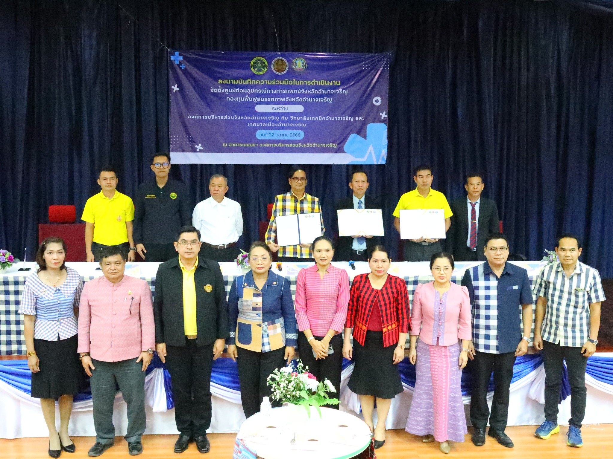อบจ.อำนาจเจริญ ลงนามบันทึกข้อตกลงความร่วมมือในการดำเนินงานจัดตั้งศูนย์ซ่อมอุปกรณ์ทางการแพทย์จังหวัดอำนาจเจริญ กองทุนฟื้นฟูสมรรถภาพจังหวัดอำนาจเจริญ
