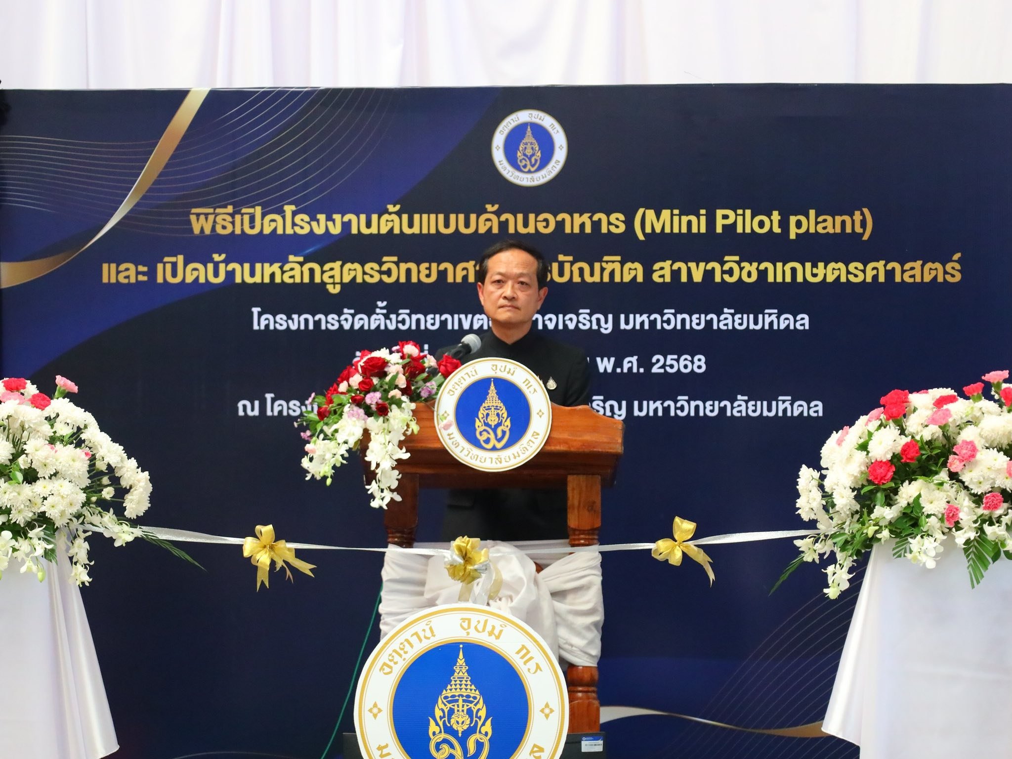 วันที่ 12 พฤศจิกายน 2568 เวลา 13.00 น. ณ โถงอาคารเรียนรวม ชั้น 1 มหาวิทยาลัยมหิดลวิทยาเขตอำนาจเจริญ นายอนุรัตน์ ธรรมประจำจิต ผู้ว่าราชการจังหวัดอำนาจเจริญ เป็นประธานพิธีเปิดโรงงานต้นแบบด้านอาหาร และเปิดบ้านหลักสูตรวิทยาศาสตร์บัณฑิต สาขาวิชาเกษตรศาสตร์ ม.มหิดล วิทยาเขตอำนาจเจริญ