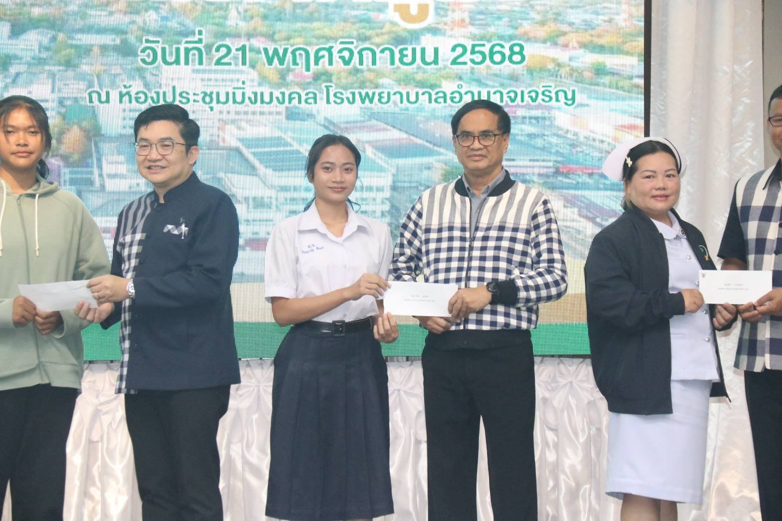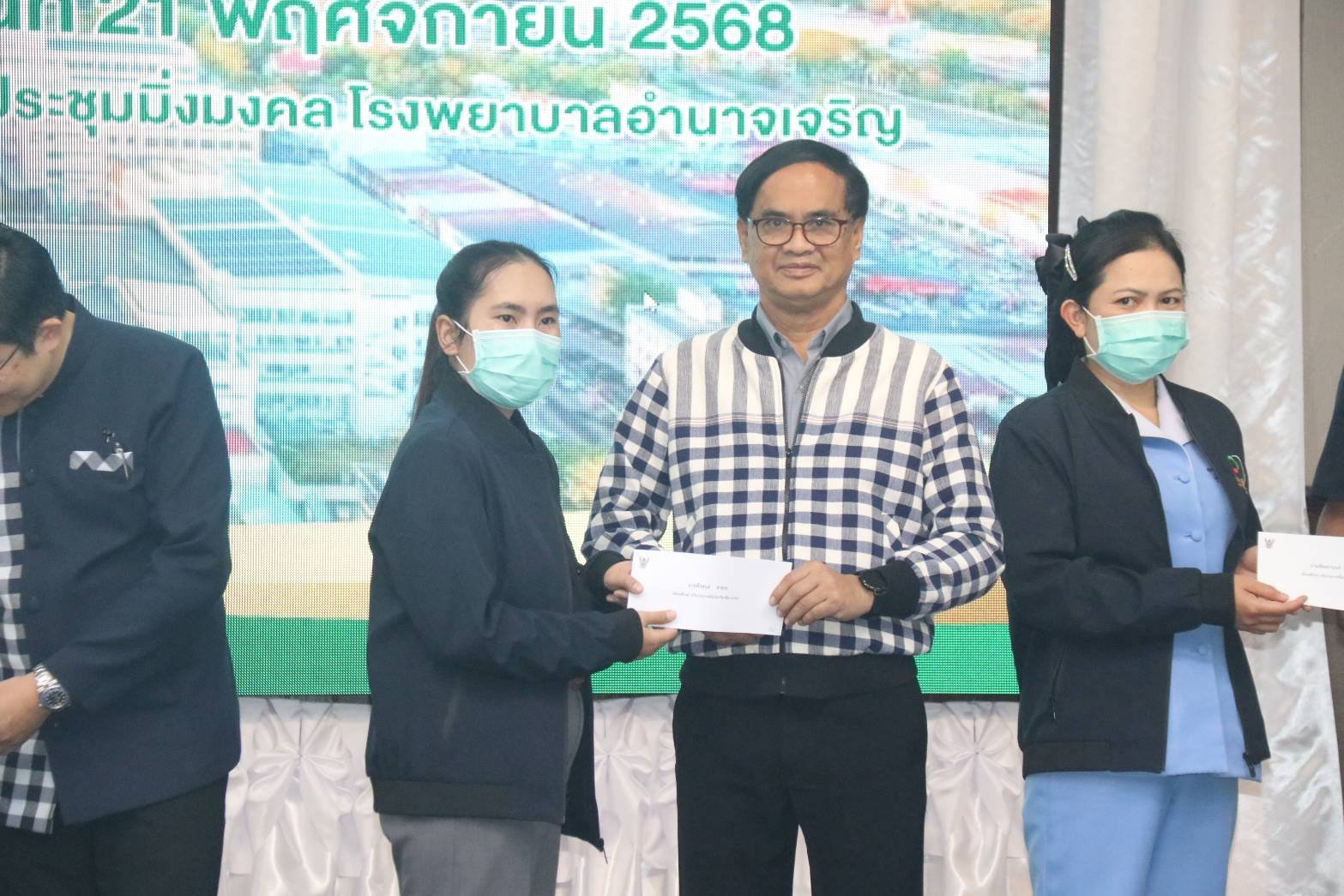 วันที่21 พฤศจิกายน 2568 เวลา 09.00 น. ณ ห้องประชุมมิ่งมงคล อาคารมิ่งเมือง โรงพยาบาลอำนาจเจริญ นายเสนีย์ ส้มเขียวหวาน รองผู้ว่าราชการจังหวัดอำนาจเจริญ รักษาราชการแทนผู้ว่าราชการจังหวัดอำนาจเจริญ เป็นประธานเปิดกิจกรรมเนื่องในวันคล้ายวันสถาปนาครบรอบ 52 ปี โรงพยาบาลอำนาจเจริญ พร้อมมอบโล่ประกาศเกียรติคุณและเกียรติบัตรแก่เจ้าหน้าที่ดีเด่น ผู้ปฏิบัติงานด้วยความเสียสละ และการมอบทุนการศึกษาแก่บุตรเจ้าหน้าที่ โดยมี นายพนัส พันธุ์วรรณ นายก อบจ.อำนาจเจริญ และนายเเพทย์ชัยพร ทองปนะเสริฐ ที่ปรึกษาพิเศษนายก อบจ.อำนาจเจริญ ร่วมกิจกรรมในครั้งนี้
