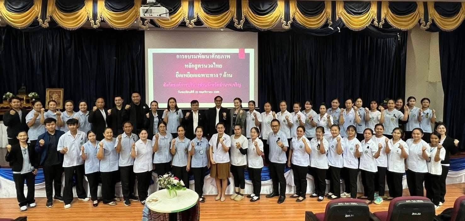 วันที่ 21 พฤศจิกายน 2568 อบจ.อำนาจเจริญ จัดอบรมพัฒนาศักยภาพนวดไทย หลักสูตรนวดไทย ยืดเหยียดเฉพาะทาง 7 ด้าน