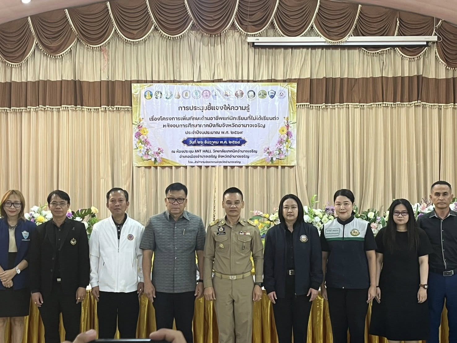 วันที่ 26 ธันวาคม 2568 เวลา 11.00 น. ณ ห้องประชุม ANT HALL วิทยาลัยเทคนิคอำนาจเจริญ นายไพรฑูรย์ พรหมสอน รองผู้ว่าราชการจังหวัดอำนาจเจริญ เป็นประธานพิธีเปิดการประชุมชี้แจงให้ความรู้เรื่องโครงการทักษะด้านอาชีพแก่นักเรียนที่ไม่ได้เรียนต่อหลังจบการศึกษาภาคบังคับ