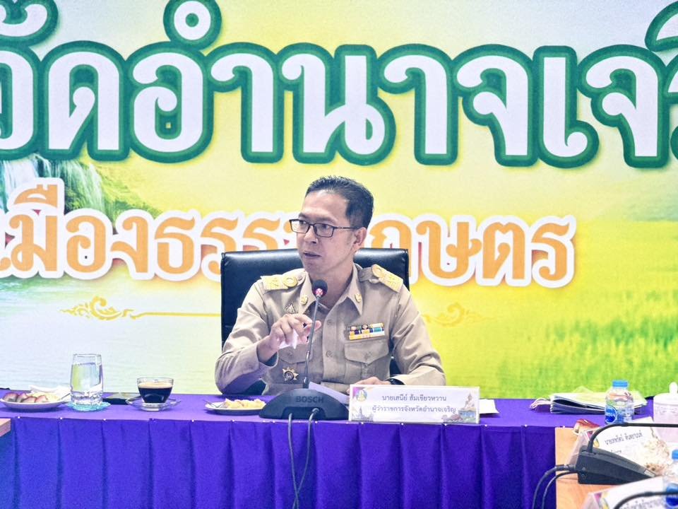 วันที่ 26 มกราคม 69 เวลา 08.00 น. นายเสนีย์ ส้มเขียวหวาน ผู้ว่าราชการจังหวัดอำนาจเจริญ เป็นประธานการประชุมหัวหน้าส่วนราชการ หัวหน้าหน่วยงานรัฐวิสาหกิจ สังกัดกระทรวงมหาดไทย นายอำเภอ ทุกอำเภอ นายกองค์การบริหารส่วนจังหวัดอำนาจเจริญ นายกเทศมนตรีเมืองอำนาจเจริญ ครั้งที่ 1/2569 ประจำเดือน มกราคม 2569