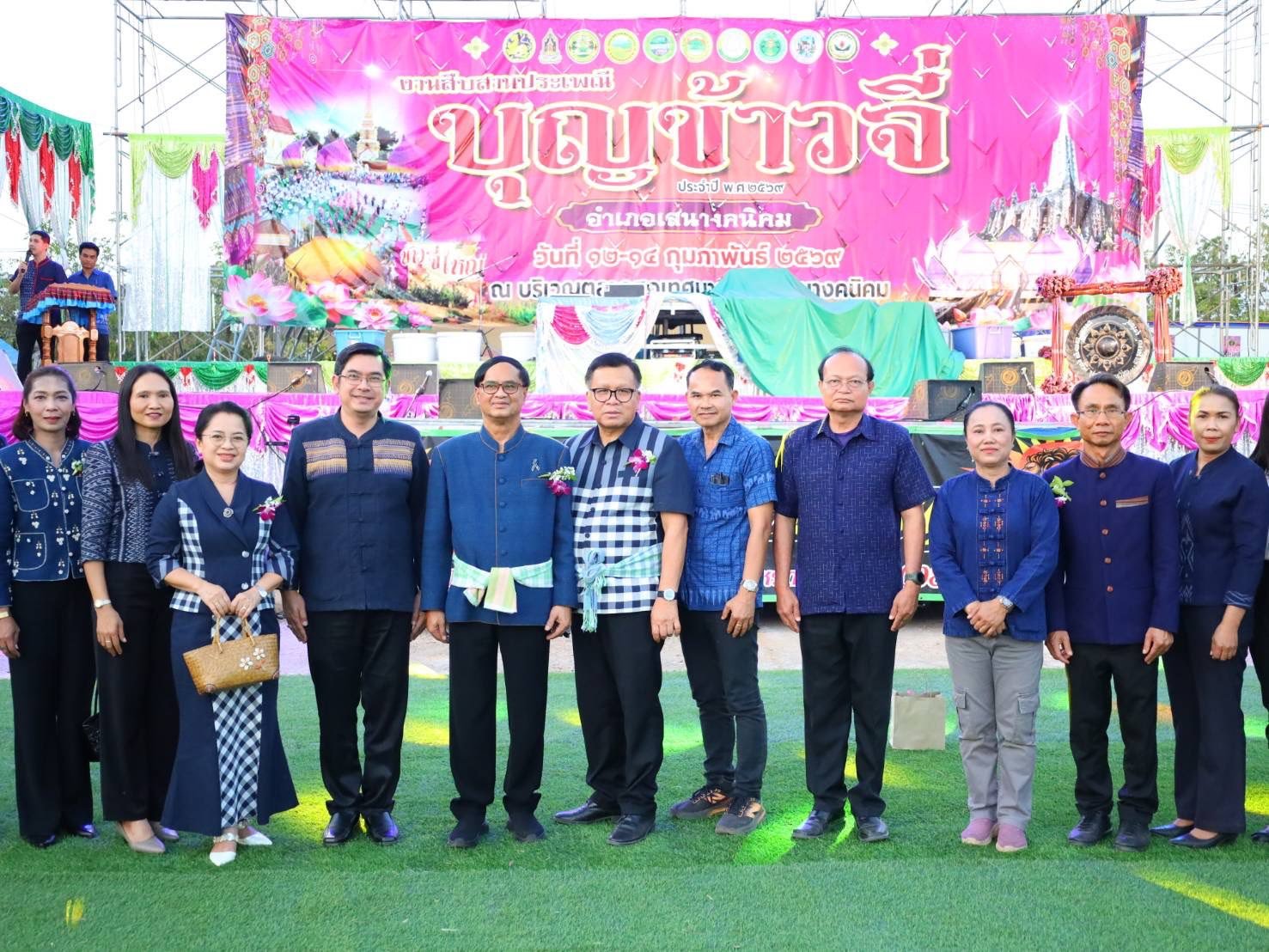 12 กุมภาพันธ์ 2569 เวลา 17.00 น. ณ บริเวณตลาดสดเทศบาลตำบลเสนางคนิคม อำเภอเสนางคนิคม จังหวัดอำนาจเจริญ นายเสนีย์ ส้มเขียวหวาน ผู้ว่าราชการจังหวัดอำนาจเจริญ เป็นประธานเปิดงานสืบสานประเพณีบุญข้าวจี่อำเภอเสนางคนิคม ประจำปี 2569