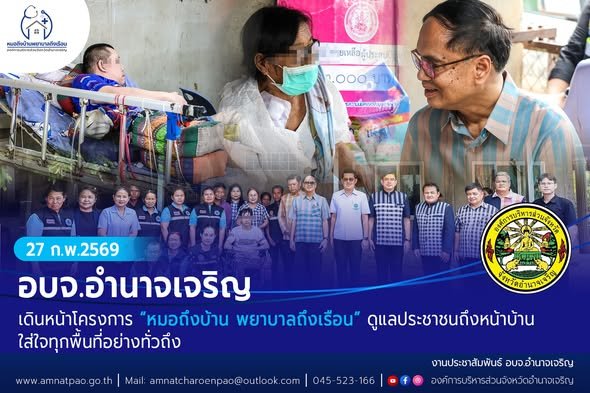 วันที่ 27 กุมภาพันธ์ 2569 อบจ.อำนาจเจริญ เดินหน้าโครงการ “หมอถึงบ้าน พยาบาลถึงเรือน” ดูแลประชาชนถึงหน้าบ้าน ใส่ใจทุกพื้นที่อย่างทั่วถึง