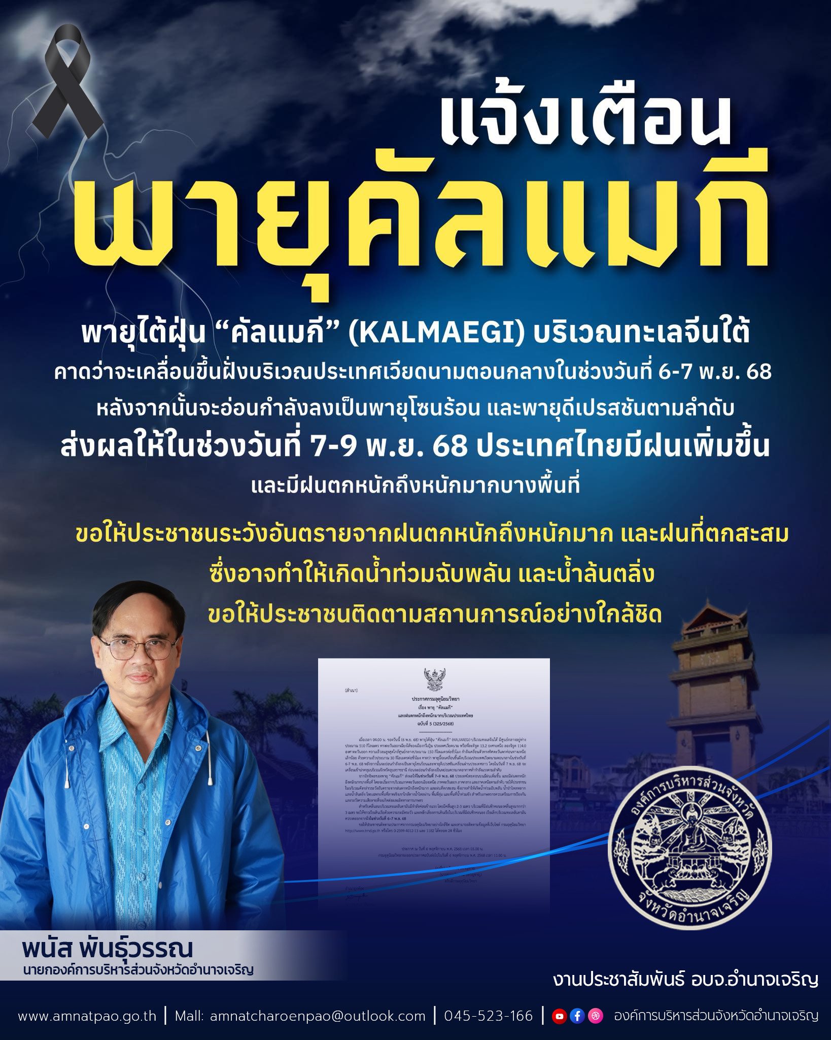 อบจ.อำนาจเจริญ #แจ้งเตือน พายุคัลแมกี