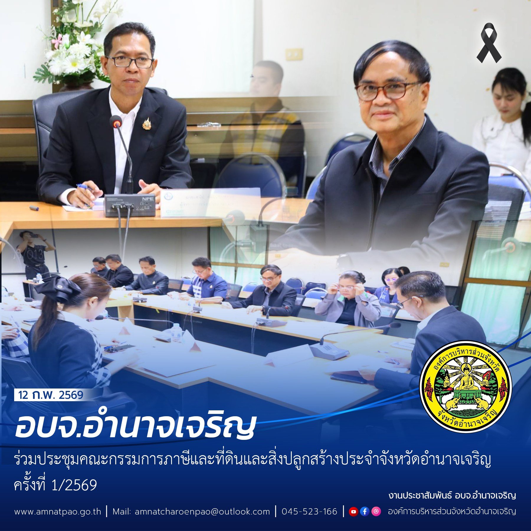 วันที่ 12 ก.พ. 69 เวลา 09.30 น. อบจ.อำนาจเจริญ ร่วมประชุมคณะกรรมการภาษีที่ดินและสิ่งปลูกสร้างประจำจังหวัดอำนาจเจริญ