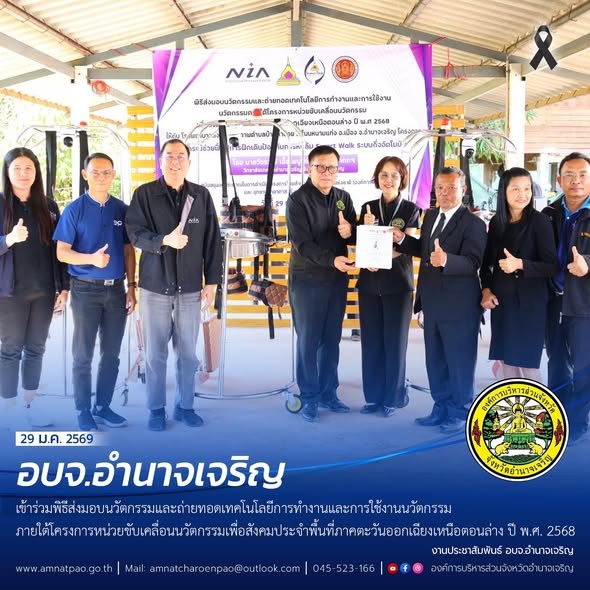 วันที่ 29 มกราคม พ.ศ. 2569 เวลา 13.30 น. องค์การบริหารส่วนจังหวัดอำนาจเจริญ รับมอบนวัตกรรมและถ่ายทอดเทคโนโลยีการทำงานและการใช้งานนวัตกรรมภายใต้โครงการหน่วยขับเคลื่อนนวัตกรรมเพื่อสังคมประจำพื้นที่ภาคตะวันออกเฉียงเหนือตอนล่าง ปี พ.ศ. 2568