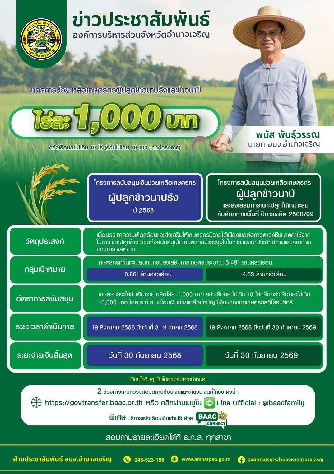 ประชาสัมพันธ์แจ้งประชาชน องค์การบริหารส่วนจังหวัดอำนาจเจริญ