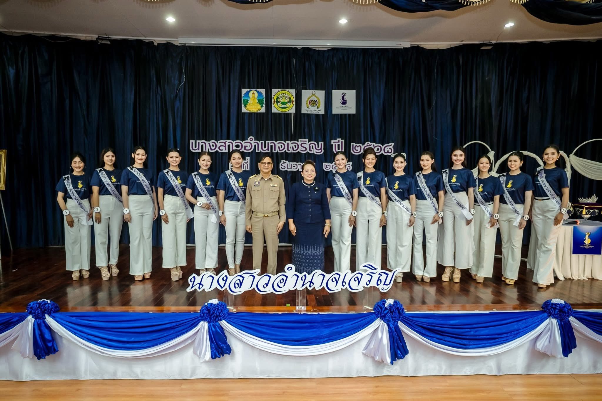 นายพนัส พันธุ์วรรณ นายก อบจ.อำนาจเจริญ พบปะให้กำลังใจและปฐมนิเทศ “นางสาวอำนาจเจริญ 2568” และ พิธีมอบสายสะพาย และหมายเลข พร้อมด้วยนางประกาย กองทอง ที่ปรึกษานายก อบจ.อำนาจเจริญ คณะกองประกวดนางสาวอำนาจเจริญ ผู้สมัครเข้าประกวด เข้าร่วมกิจกรรมในครั้งนี้