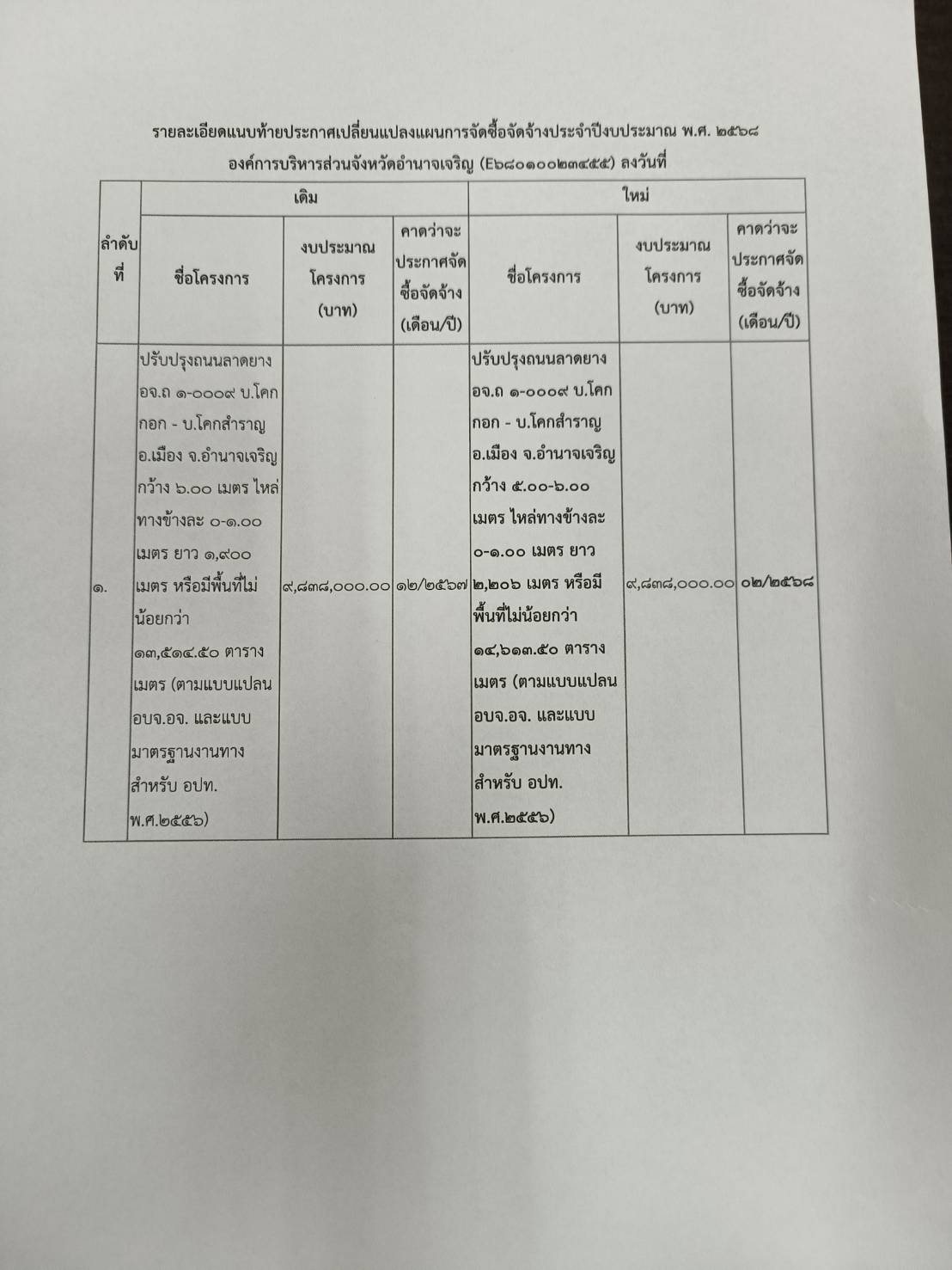 ประกาศ เรื่อง เปลี่ยนแปลงแผนการจัดซื้อจัดจ้าง ประจำปีงบประมาณ พ.ศ. 2568 ประกาศ ณ วันที่ 29 มกราคม พ.ศ. 2568