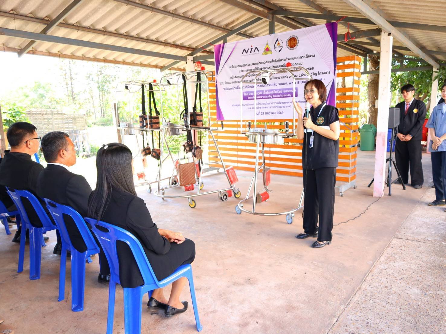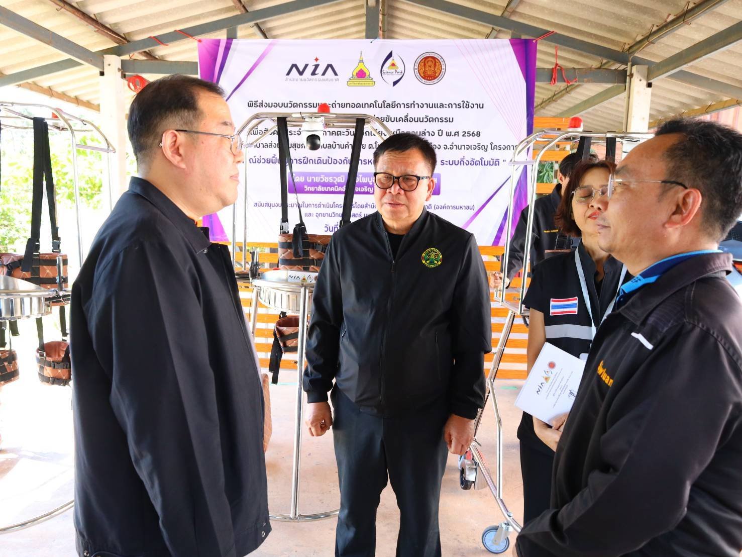 โครงการรับมอบอุปกรณ์ช่วยฟื้นฟูการฝึกเดินป้องกันการหกล้ม Smart Walk ระบบกึ่งอัตโนมัติ โดย นายวัชรวุฒิ เอื้อไพบูลย์ทรัพย์ และคณะวิทยาลัยเทคนิคอำนาจเจริญ จังหวัดอำนาจเจริญ สนับสนุนงบประมาณในการดำเนินโครงการโดยสำนักงานนวัตกรรมแห่งชาติ (องค์การมหาชน)และ อุทยานวิทยาศาสตร์ มหาวิทยาลัยอุบลราชธานี ณ โรงพยาบาลส่งเสริมสุขภาพตำบลบ้านคำน้อย ต.โนนหนามแท่ง อ.เมือง อำนาจเจริญ จ.อำนาจเจริญ