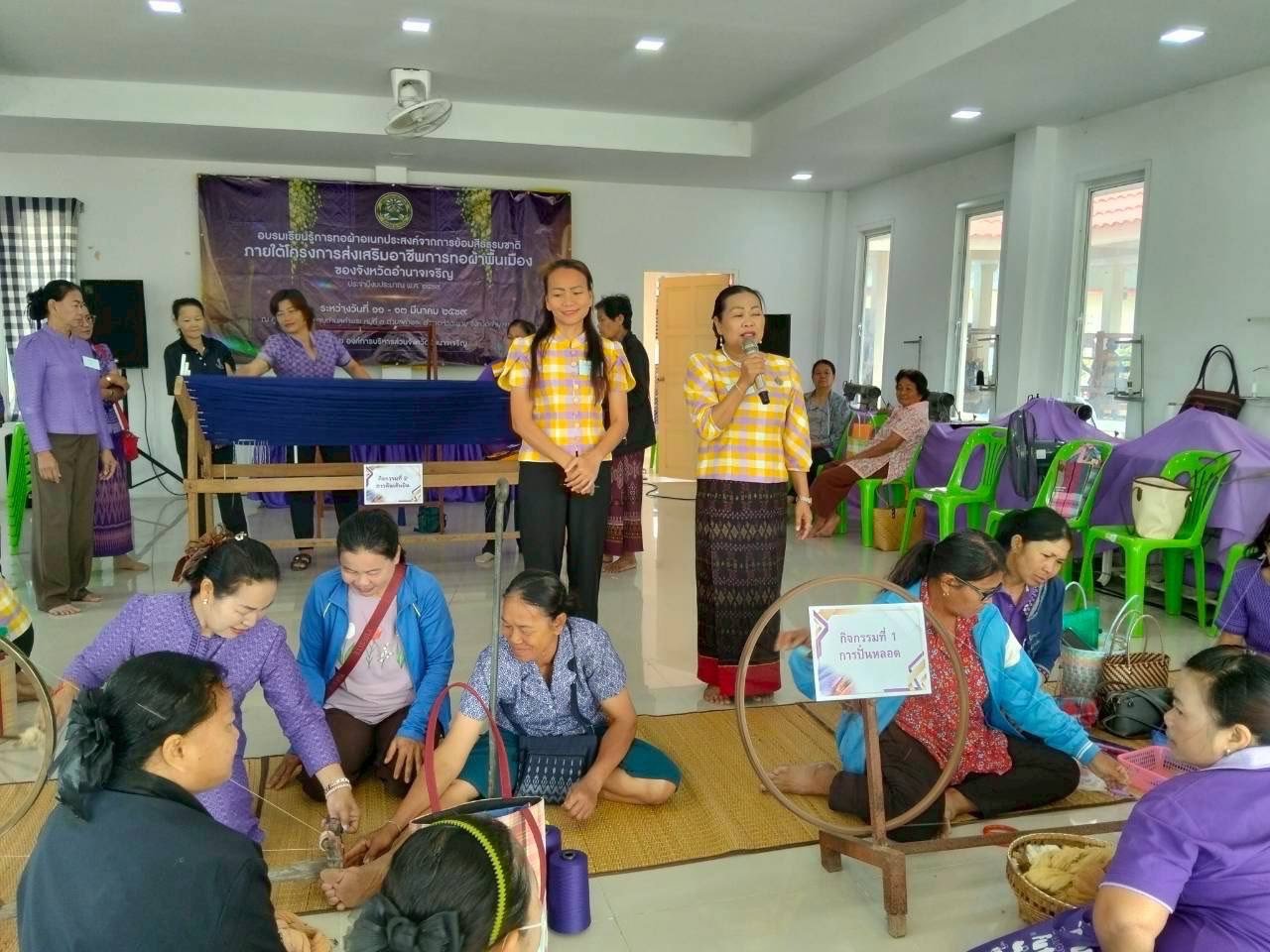 บรรยากาศวันที่ 3 ของกิจกรรม โครงการอบรมการทอผ้าอเนกประสงค์จากการย้อมสีธรรมชาติภายใต้โครงการส่งเสริมอาชีพการทอผ้าพื้นเมืองของจังหวัดอำนาจเจริญ ประจำปีงบประมาณ พ.ศ. 2569