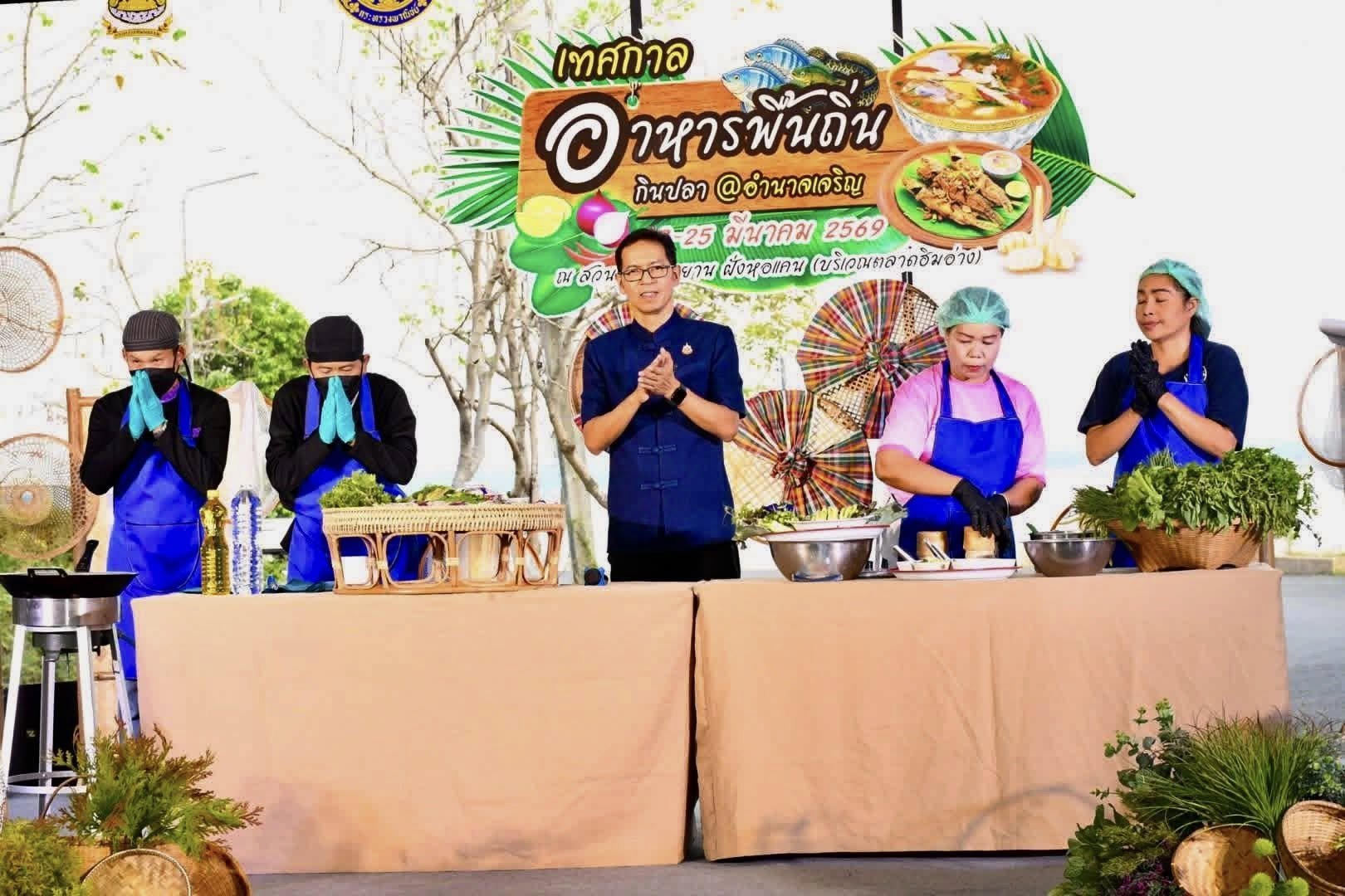 จึงขอเชิญชวนนักท่องเที่ยวและประชาชนร่วมสัมผัสวิถีถิ่น กินปลาเมืองอำนาจเจริญ ในงาน “เทศกาลอาหารพื้นถิ่น กินปลา อำนาจเจริญ” ระหว่างวันที่ 23 – 25 มีนาคม 2569 ณ สวนพุทธอุทยาน (ฝั่งหอแคน) บริเวณตลาดฮิมอ่าง จังหวัดอำนาจเจริญ