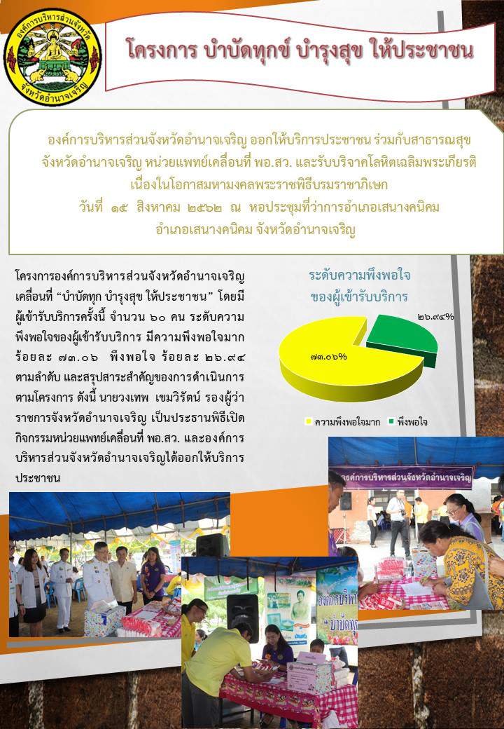โครงการองค์การบริหารส่วนจังหวัดอำนาจเจริญเคลื่อนที่ "บำบัดทุกข์ บำรุงสุข ให้ประชาชน" 19 ส.ค. 62