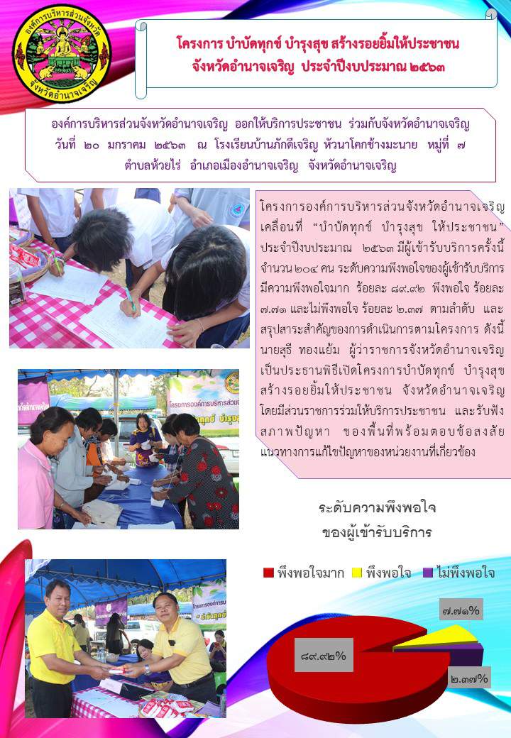 โครงการองค์การบริหารส่วนจังหวัดอำนาจเจริญเคลื่อนที่ "บำบัดทุกข์ บำรุงสุข ให้ประชาชน" 20 ม.ค. 63