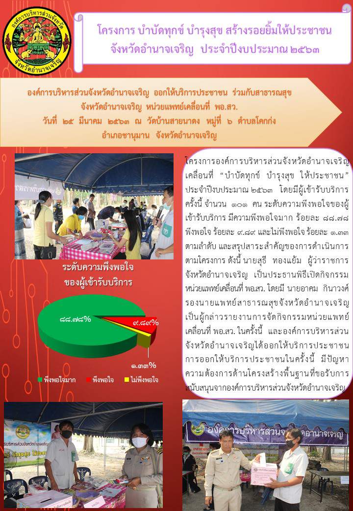 โครงการองค์การบริหารส่วนจังหวัดอำนาจเจริญเคลื่อนที่ "บำบัดทุกข์ บำรุงสุข ให้ประชาชน" 25 มี.ค. 63