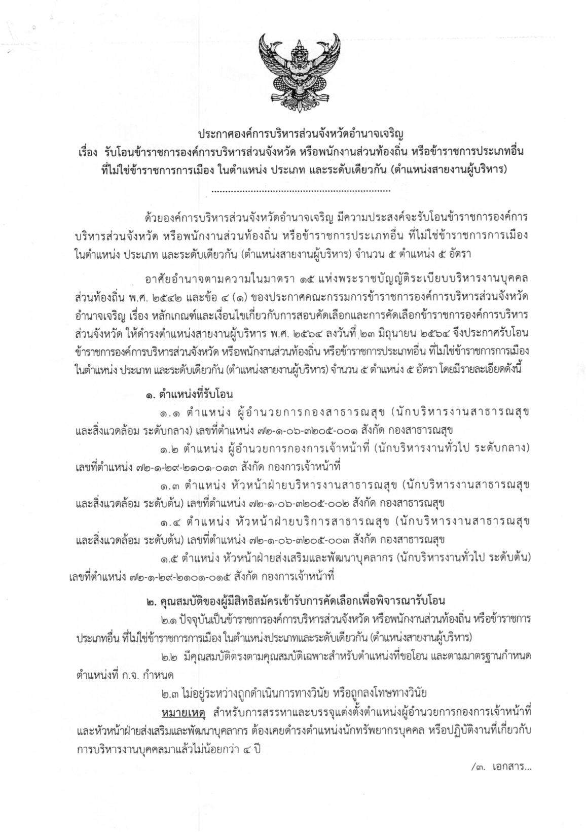 ประกาศ เรื่อง รับโอนข้าราชการองค์การบริหารส่วนจังหวัด หรือพนักงานส่วนท้องถิ่น หรือข้าราชการประเภทอื่นที่ไม่ใช่ข้าราชการการเมือง ในตำแหน่ง ประเภท และระดับเดียวกัน (ตำแหน่งสายงานผู้บริหาร ) ลงวันที่ 12 ก.ค. 64