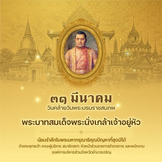 วันที่ (31 มีนาคม 2569) เวลา 07.30 น. พิธีเนื่องในวันที่ระลึกพระบาทสมเด็จพระนั่งเกล้าเจ้าอยู่หัว พระมหาเจษฎาราชเจ้า ประจำปี พ.ศ. 2569
