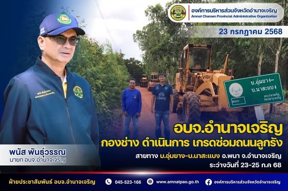 อบจ.อำนาจเจริญ ดำเนินการเกรดซ่อมบำรุงสายทาง เขตพื้นที่ อ.เมืองอำนาจเจริญ จ.อำนาจเจริญ