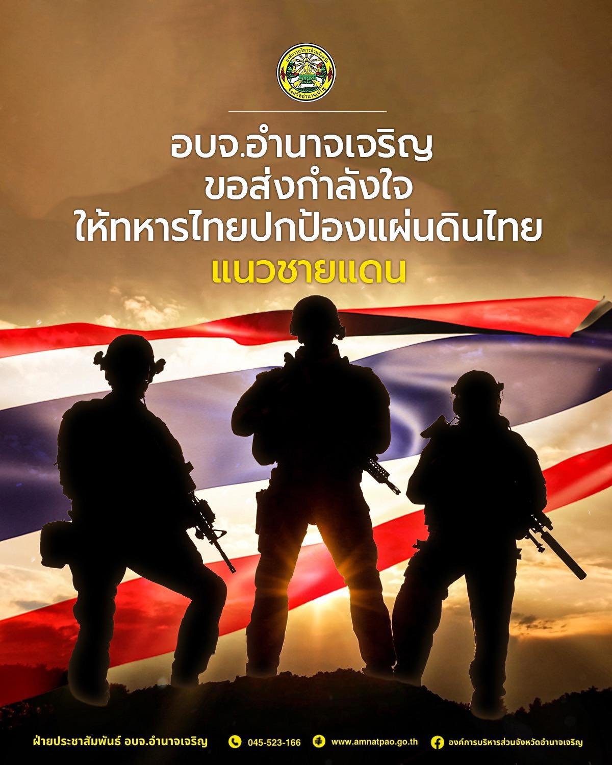 อบจ.อำนาจเจริญ ขอส่งกำลังใจให้ทหารไทยปกป้องแผ่นดินไทยแนวชายแดน