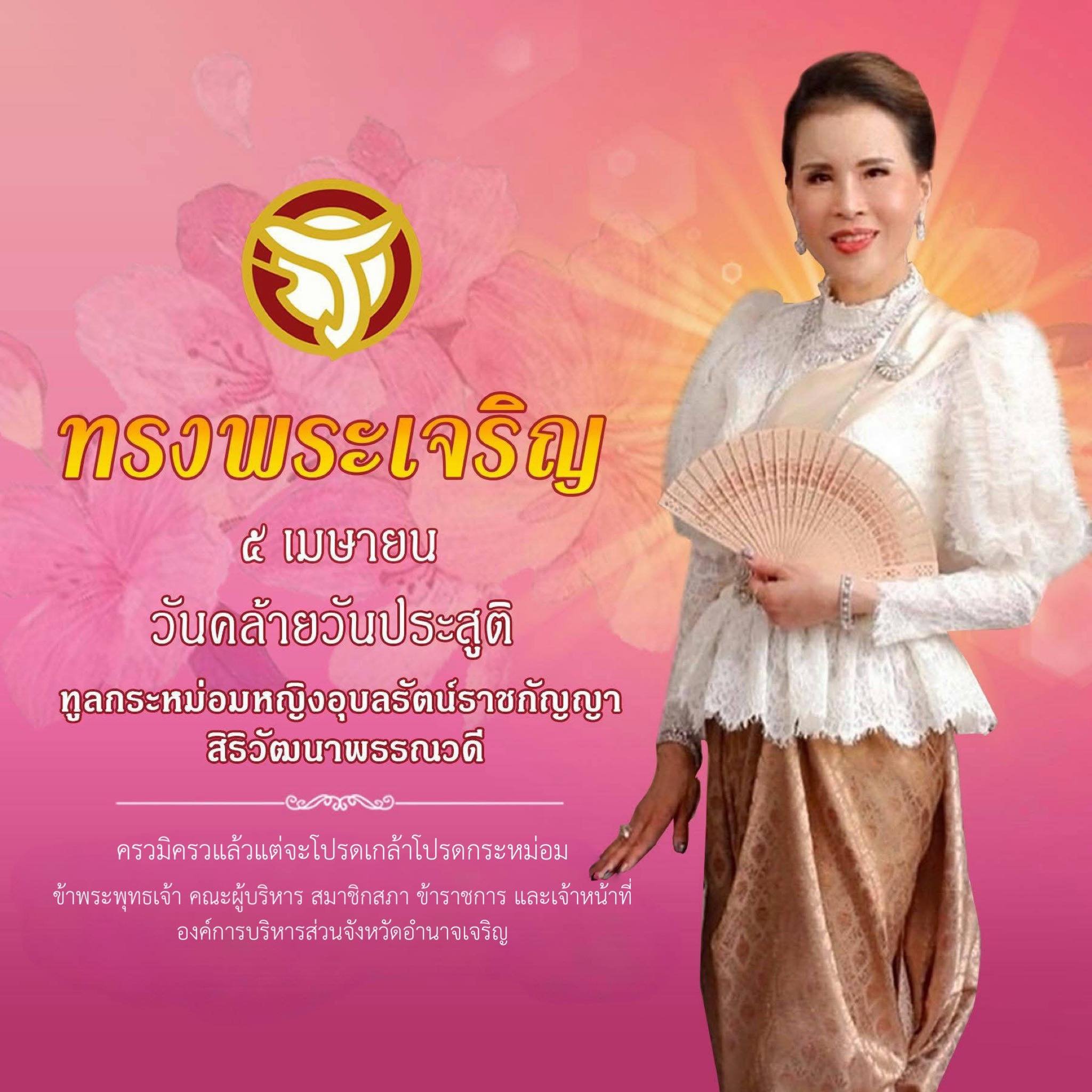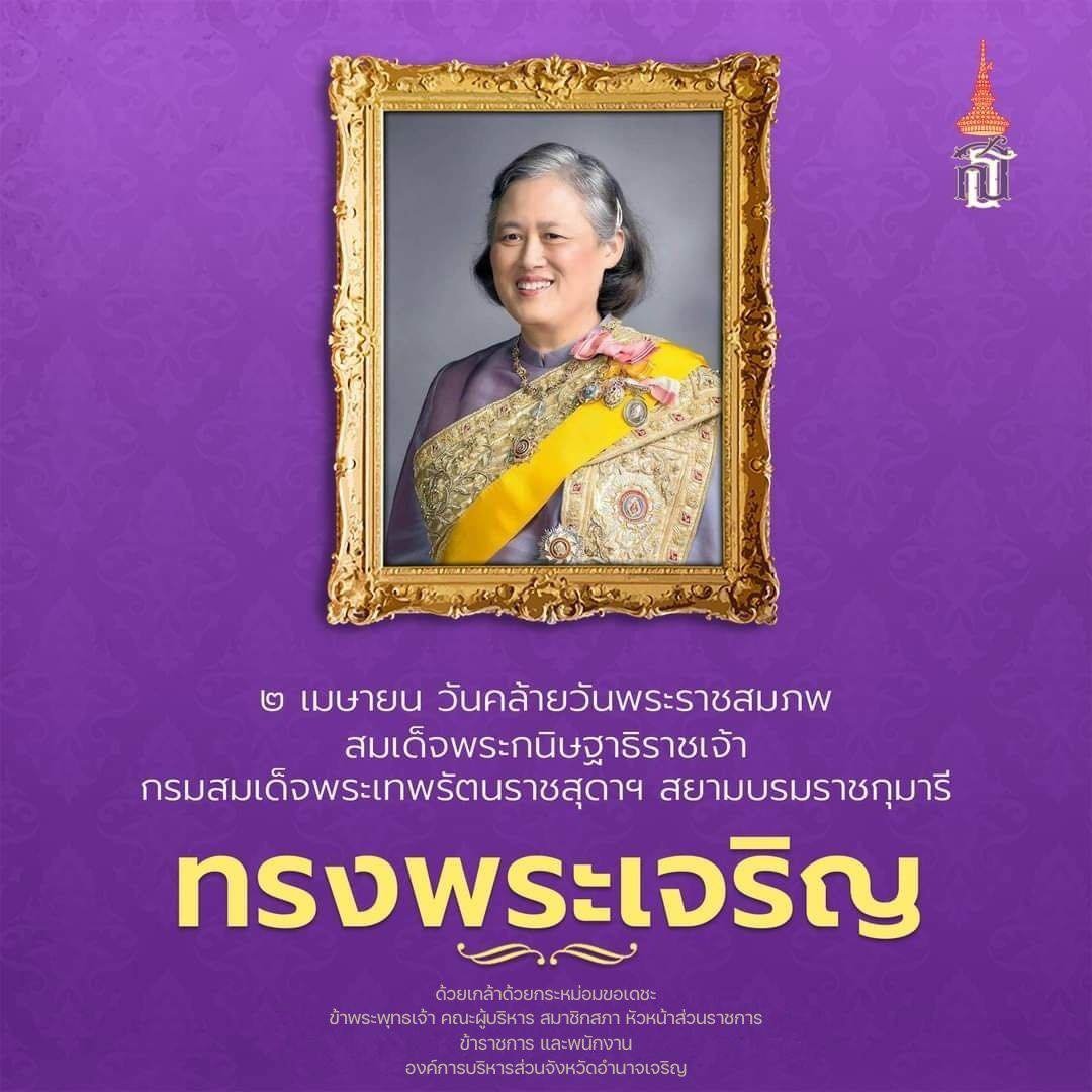 “ ทรงพระเจริญ ” ๒ เมษายน ๒๕๖๘ วันคล้ายวันพระราชสมภพ สมเด็จพระกนิษฐาธิราชเจ้า กรมสมเด็จพระเทพรัตนราชสุดาฯ สยามบรมราชกุมารี ด้วยเกล้าด้วยกระหม่อม ข้าพระพุทธเจ้า คณะผู้บริหาร สมาชิกสภา ข้าราชการ และพนักงาน องค์การบริหารส่วนจังหวัดอำนาจเจริญ