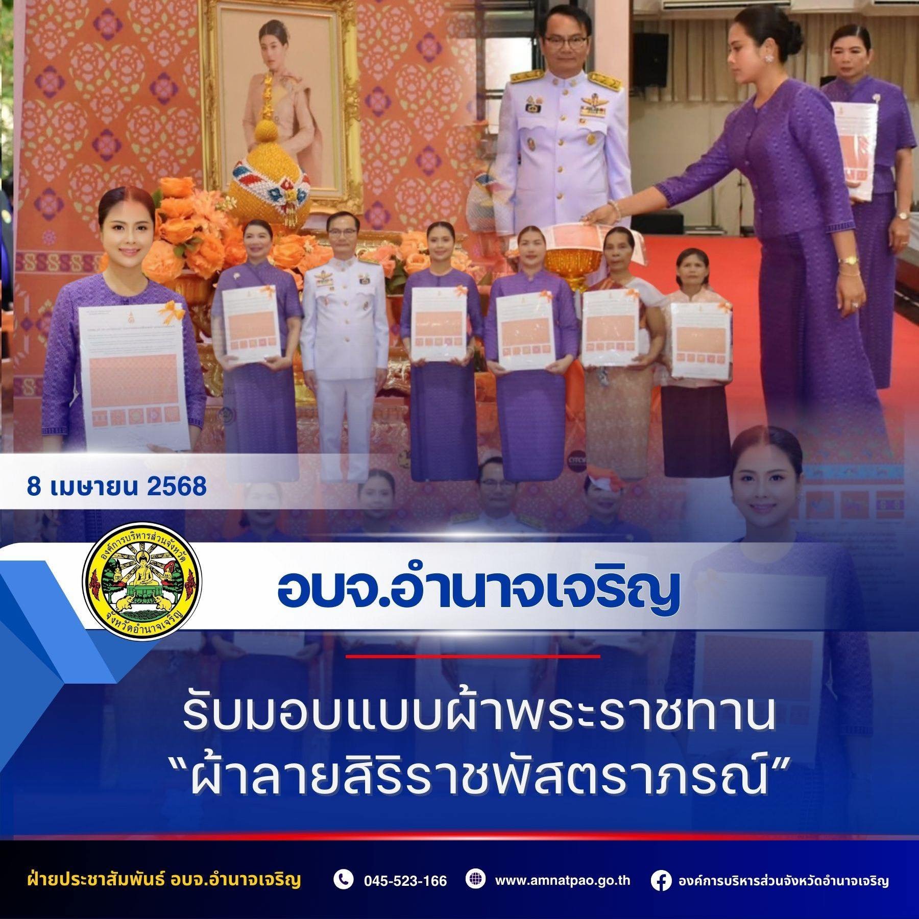 8 เมษายน พ.ศ.2568 อบจ.อำนาจเจริญ รับมอบแบบผ้าพระราชทาน “ผ้าลายสิริราชพัสตราภรณ์”