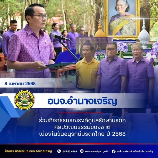 8 เมษายน 2568 อบจ.อำนาจเจริญ ร่วมกิจกรรมรณรงค์ดูแลรักษามรดกศิลปวัฒนธรรมของชาติ เนื่องในวันอนุรักษ์มรดกไทย ปี 2568