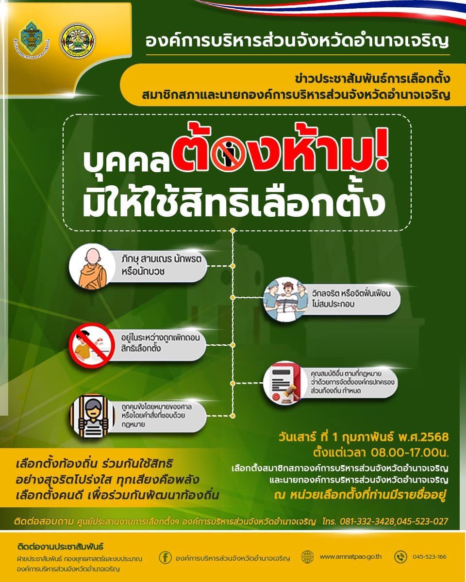 อบจ.อำนาจเจริญ | ประชาสัมพันธ์การเลือกตั้ง บุคคลต้องห้ามใช้สิทธิเลือกตั้ง
