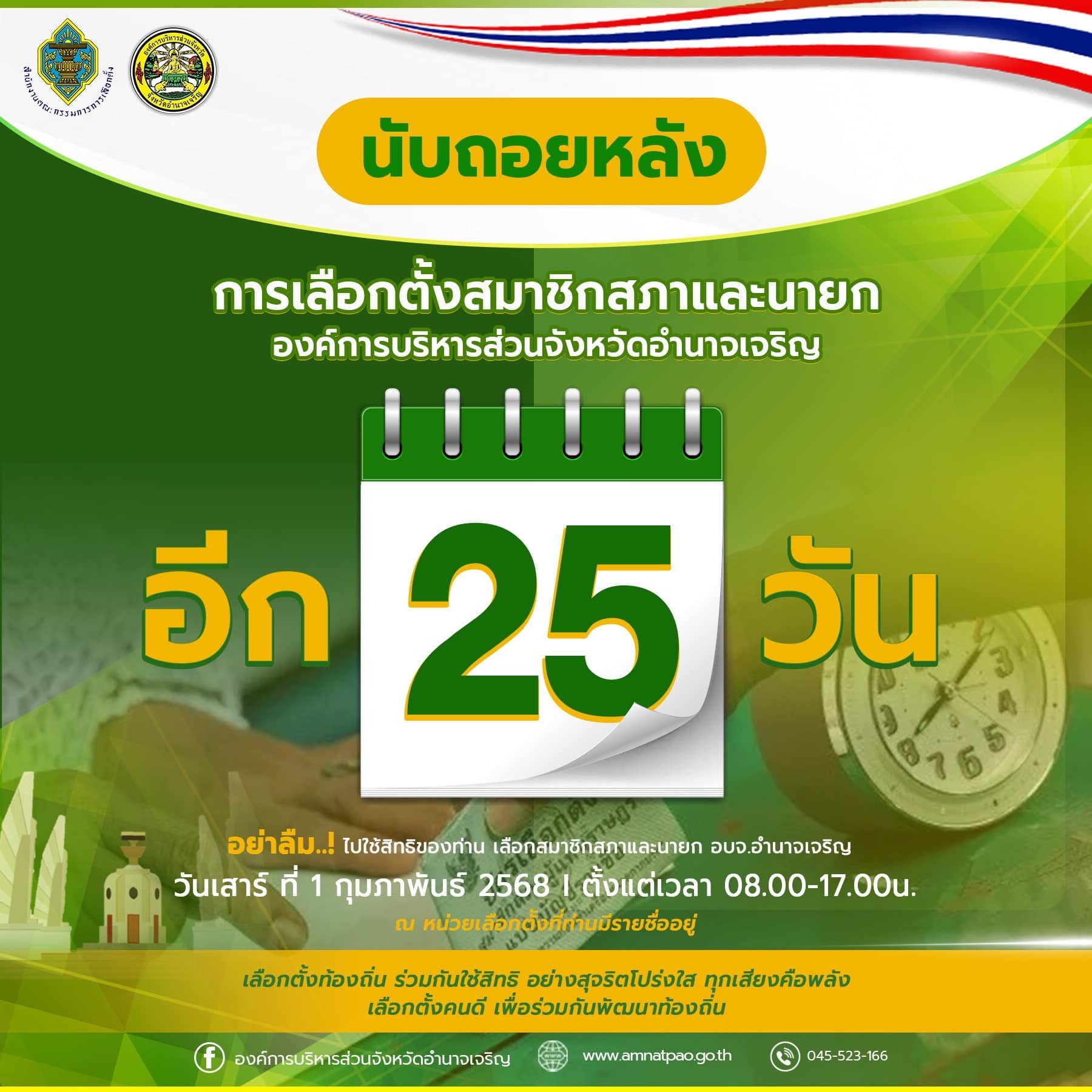 อบจ.อำนาจเจริญ | ประชาสัมพันธ์การเลือกตั้ง นับถอยหลังเหลืออีก 25 วัน