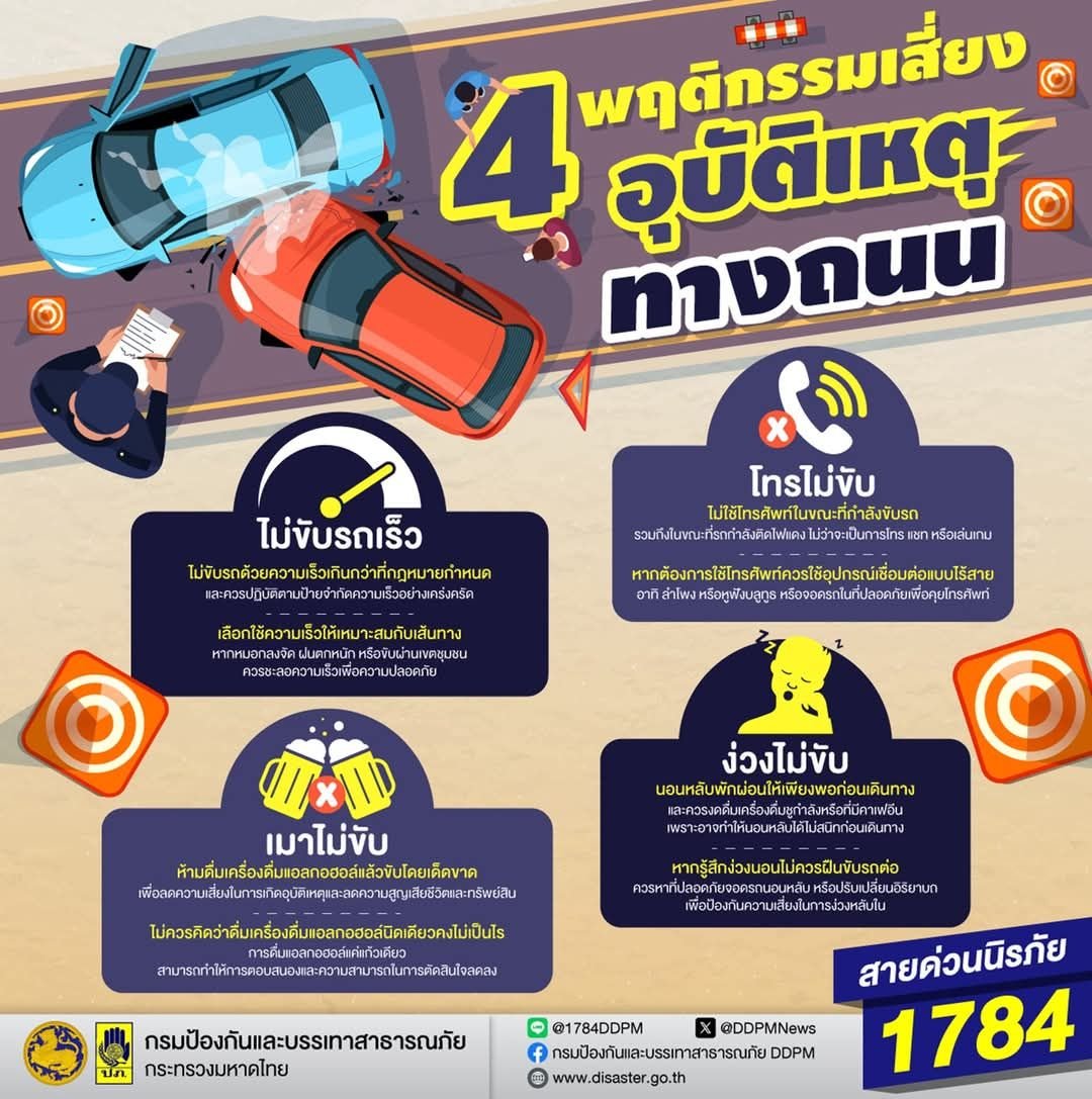 แนะ 4 พฤติกรรมเสี่ยงอุบัติเหตุทางถนน