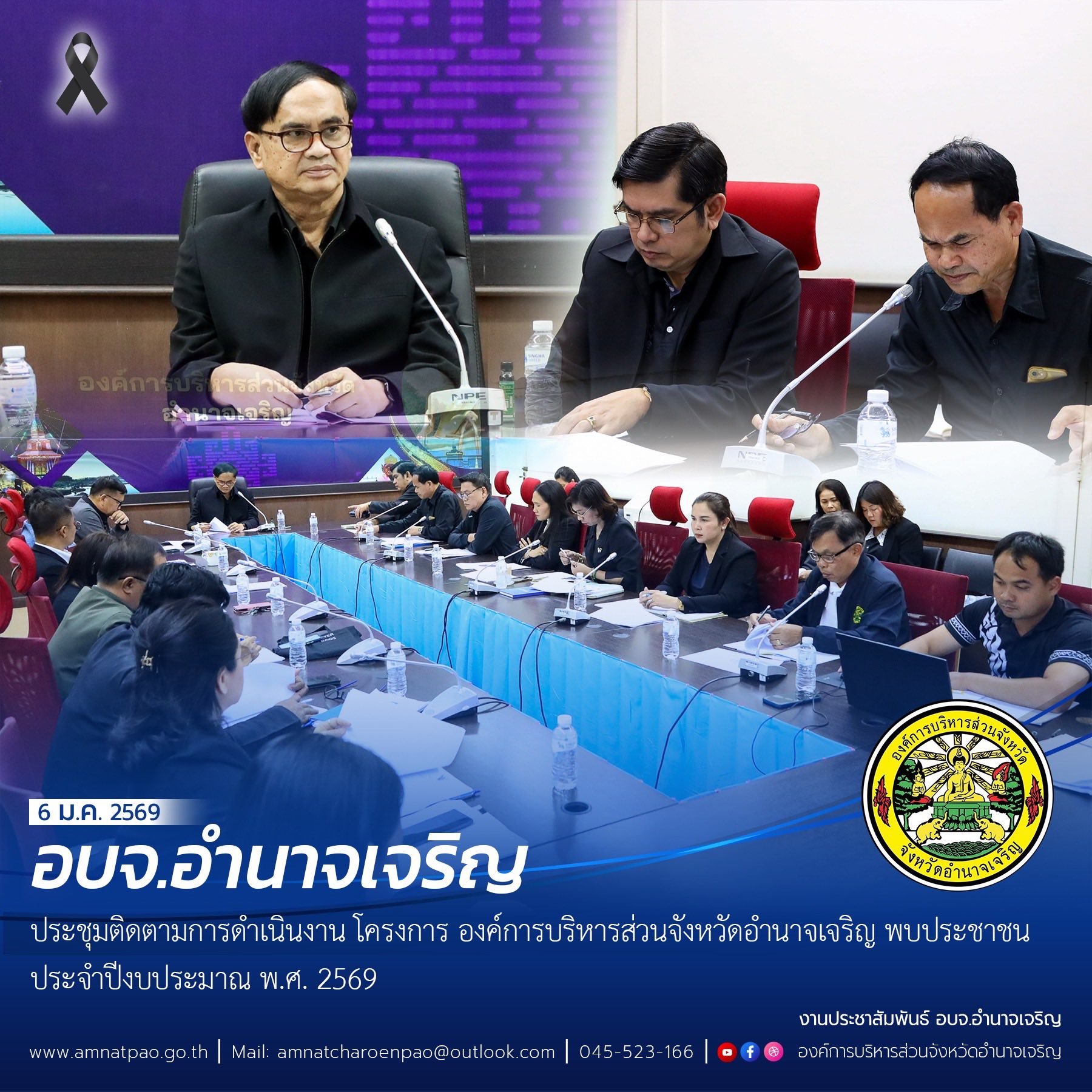 วันที่ 12 มกราคม 2569 เวลา 10.00 น. อบจ.อำนาจเจริญ ร่วมประชุมแผนงาน แนวทางการป้องกันและแก้ไขปัญหาการขับเคลื่อนการปฏิบัติงานของคณะกรรมการอำนวยการรักษาความมั่นคงภายในจังหวัดอำนาจเจริญ
