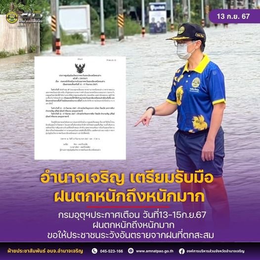 อบจ.อำนาจเจริญ ขอส่งกำลังใจให้ผู้ประสบภัยน้ำท่วมภาคเหนือ และเจ้าหน้าที่กู้ชีพ-กู้ภัย ทุกคน “เราจะผ่านวิกฤตภัยธรรมชาติไปด้วยกัน” #องค์การบริหารส่วนจังหวัดอำนาจเจริญ #ภูมิใจรับใช้ประชาชน #ฝ่ายประชาสัมพันธ์ #กองยุทธศาสตร์และงบประมาณ www.amnatpao.go.th โทร.045-523166, แฟกส์ : 045 - 523166,045 - 523227