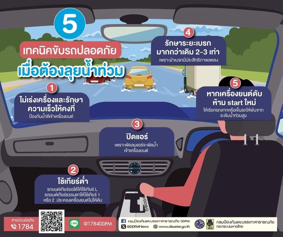 ขับรถผ่านน้ำท่วมขังอย่างไรให้ปลอดภัยลดการเสี่ยงอันตราย ช่วงหน้าฝนแบบนี้ สิ่งหนึ่งที่มักเจอเวลาขับรถบนท้องถนน ก็คือ น้ำท่วม และถ้าหากจำเป็นต้องขับรถลุยน้ำท่วมจริงๆ ต้องทำอย่างไรให้ปลอดภัยและลดความเสี่ยงที่จะเกิดขึ้น 1.ไม่เร่งเครื่อง และรักษาความเร็วให้คงที่ 2.ใช้เกียร์ต่ำ 3. ปิดแอร์ 4. รักษาระยะเบรกมากกว่าเดิม 2-3 เท่า 5. หากเครื่องยนต์ดับ ห้ามสตาร์ทใหม่ ด้วยความปรารถนาดีจาก องค์การบริหารส่วนจังหวัดอำนาจเจริญ ที่มา กรมป้องกันและบรรเทาสาธารณภัย