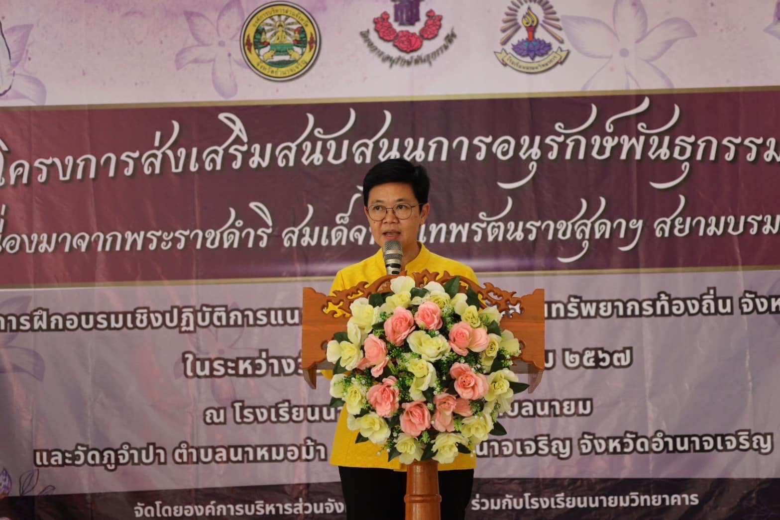 29 สิงหาคม 2567 เวลา 15.30 น. อบจ.อำนาจเจริญ จัดโครงการส่งเสริมสนับสนุนการอนุรักษ์พันธุกรรมพืชอันเนื่องมาจากพระราชดำริ สมเด็จพระเทพรัตนราชสุดาฯ กิจกรรมการฝึกอบรมเชิงปฏิบัติการแนวทางการดำเนินงานฐานทรัพยากรท้องถิ่น จังหวัดอำนาจเจริญ