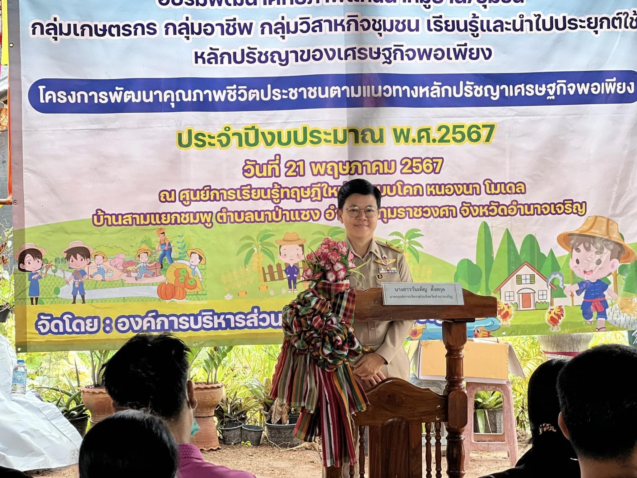 21 พฤษภาคม 2567 เวลา 09.00 น. อบจ.อำนาจเจริญ จัดโครงการพัฒนาคุณภาพชีวิตประชาชนตามแนวทางหลักปรัชญาเศรษฐกิจพอเพียง ประจำปีงบประมาณ 2567 รุ่นที่ 1 อำเภอปทุมราชวงศา