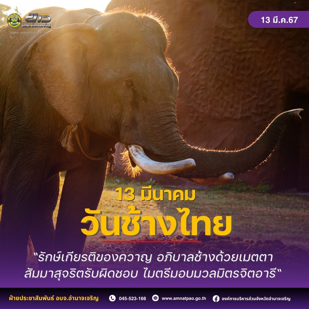 13 มีนาคม วันช้างไทย เป็นการยกย่องให้เกียรติว่าช้างเป็นสัตว์ที่มีความสำคัญ อีกทั้งช่วยให้ประชาชนคนไทย หันมาสนใจช้าง รักช้าง หวงแหนช้างกันมากขึ้น