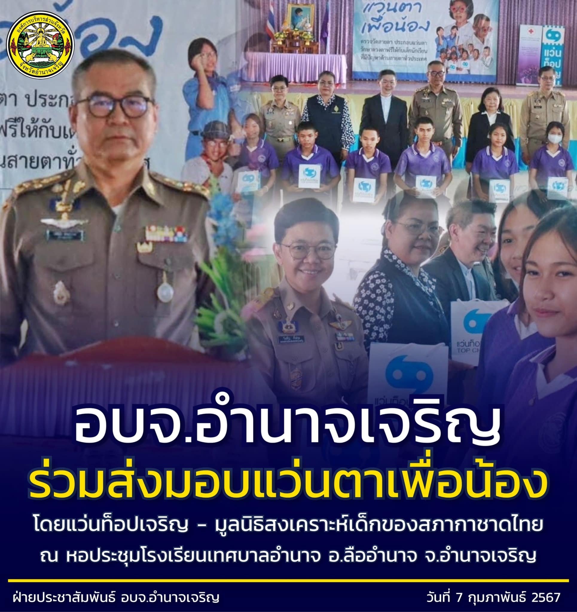 7 ก.พ.67 เวลา 08.30 น. อบจ.อำนาจเจริญ ร่วมส่งมอบแว่นตาเพื่อน้อง