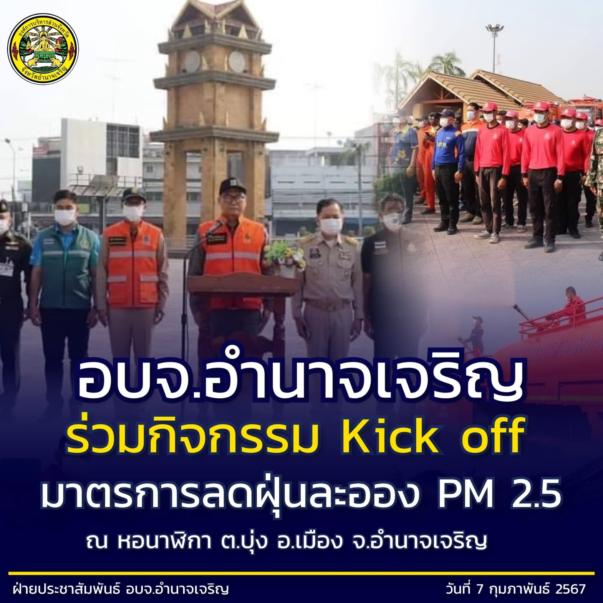 7กุมภาพันธ์ 2567 เวลา 09.30 น. อบจ.อำนาจเจริญ ร่วมกิจกรรม Kick Off มาตรการลดฝุ่นละอองขนาดเล็ก (PM 2.5)