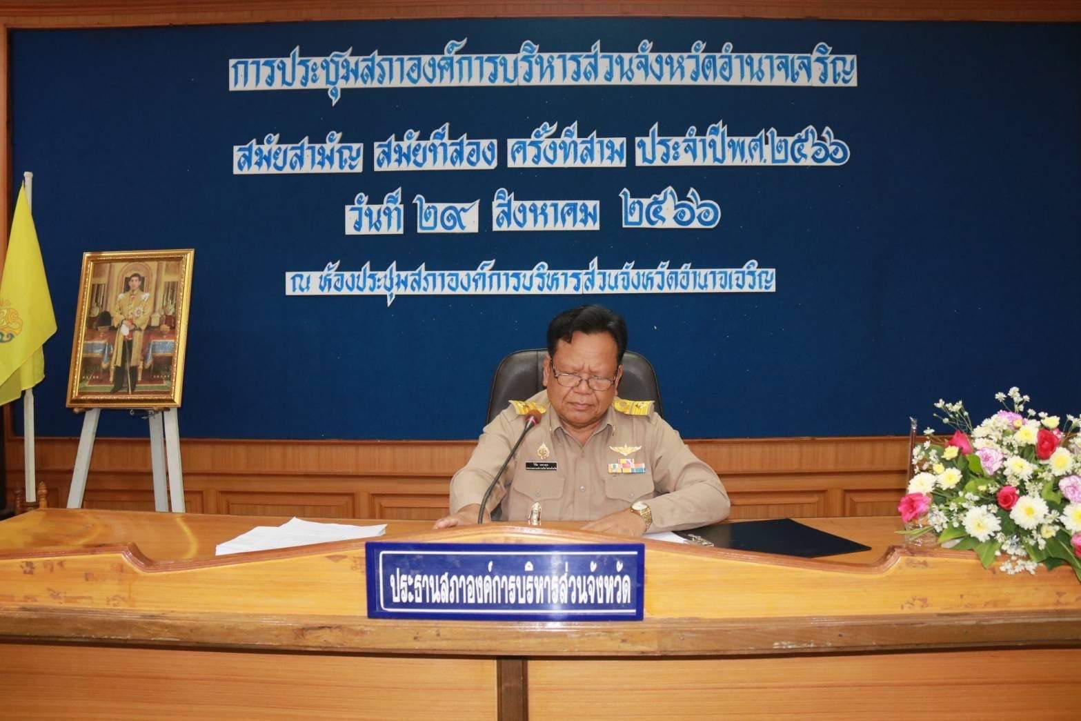 29สิงหาคม 2566 เวลา 10.00 น. นายวิชัย แสวงสุข ประธานสภาองค์การบริหารส่วนจังหวัดอำนาจเจริญ เปิดประชุมการประชุมสภาองค์การบริหารส่วนจังหวัดอำนาจเจริญ สมัยสามัญ สมัยที่สอง ครั้งที่สาม ประจำปี พ.ศ.2566 โดยมีนางสาววันเพ็ญ ตั้งสกุล นายกองค์การบริหารส่วนจังหวัดอำนาจเจริญ พร้อมด้วยคณะผู้บริหาร สมาชิกสภา หัวหน้าส่วนราชการ ข้าราชการ เข้าร่วมประชุมในครั้งนี้ ที่ ห้องประชุมสภาองค์การบริหารส่วนจังหวัดอำนาจเจริญ
