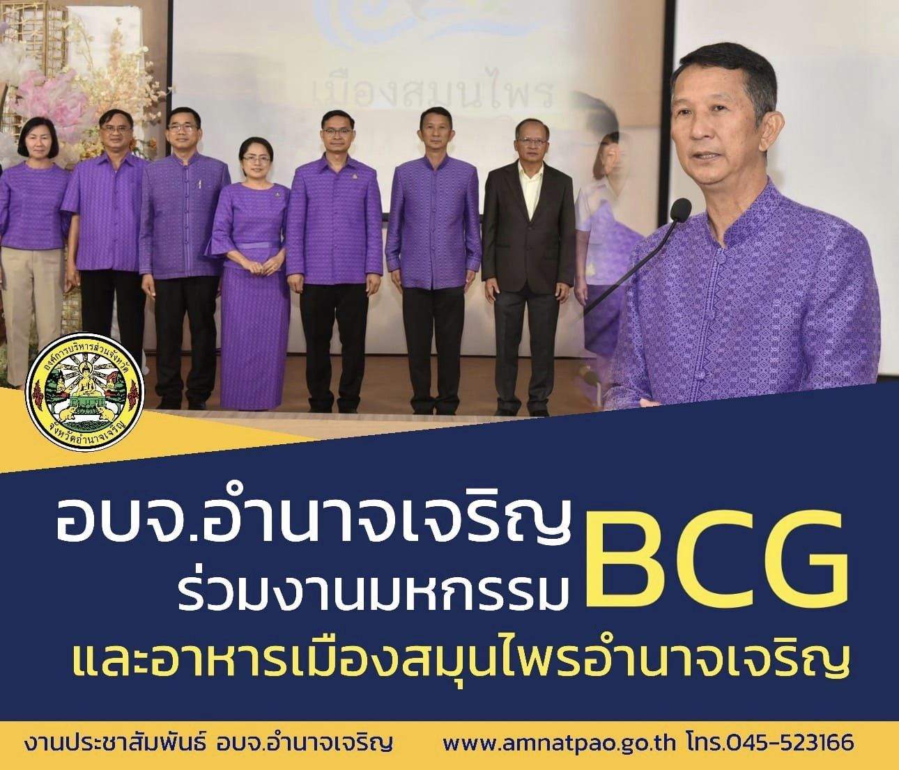 29 ส.ค.66 นางสาววันเพ็ญ ตั้งสกุล นายก อบจ.อำนาจเจริญ มอบหมายให้นายพนัส พันธุ์วรรณ รองนายก อบจ.อำนาจเจริญ ร่วมงานมหกรรม BCG และอาหารเมืองสมุนไพรอำนาจเจริญ เพื่อขับเคลื่อนการดำเนินงานตามแนวทาง BCG และเมืองสมุนไพรอำนาจเจริญ เป็นการประชาสัมพันธ์สินค้าที่ดีมีคุณภาพจากผู้ประกอบการภายในจังหวัดอำนาจเจริญ