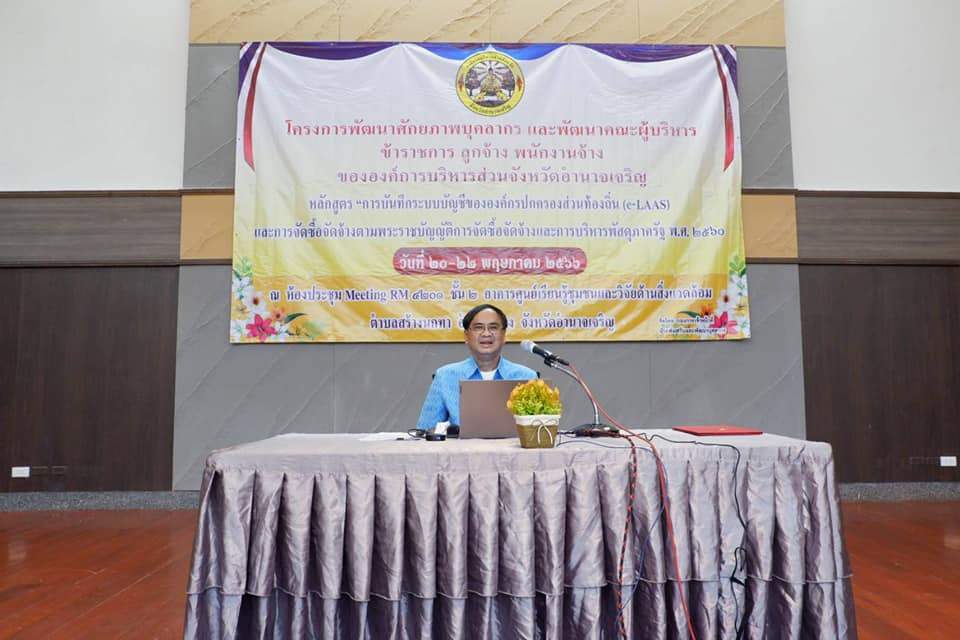 20 พฤษภาคม 2566 เวลา 08.30น. นางสาววันเพ็ญ ตั้งสกุล นายก อบจ.อจ. มอบหมายให้ นายพนัส พันธุ์วรรณ รองนายก อบจ.อำนาจเจริญ เป็นประธานและร่วมพิธีเปิดโครงการพัฒนาศักยภาพบุคลากรฯ ในหลักสูตร การบันทึกระบบบัญชีของ อปท. (e-lass) และการจัดซื้อจัดจ้าง ตาม พรบ.จัดซื้อจัดจ้างและการบริหารพัสดุภาครัฐ พ.ศ. 2560 ณ อาคารศูนย์เรียนรู้ชุมชนและวิจัยสิ่งแวดล้อม มหาวิทยาลัยมหิดล วิทยาเขตอำนาจเจริญ โดยมีนายวิชัย แสวงสุข ประธานสภา อบจ.อำนาจเจริญ สมาชิกสภา คณะผู้บริหาร ร่วมเป็นเกียรติในพิธีเปิด