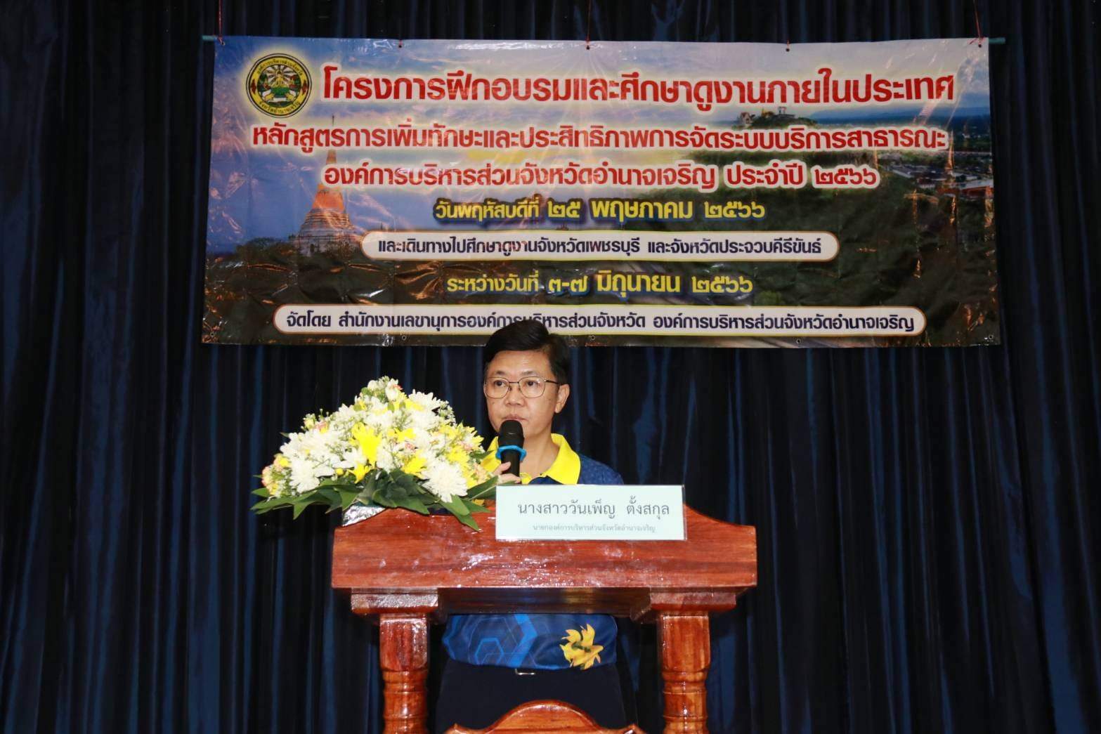 25 พ.ค. 66 เวลา 09.00 น. นางสาววันเพ็ญ ตั้งสกุล นายก อบจ.อำนาจเจริญ เป็นประธานในพิธีเปิดโครงการฝึกอบรมและศึกษาดูงานในประเทศของคณะผู้บริหาร สมาชิกสภาองค์การบริหารส่วนจังหวัด และเจ้าหน้าที่ท้องถิ่นหลักสูตรการเพิ่มทักษะและประสิทธิภาพการจัดระบบบริการสาธารณะองค์การบริหารส่วนจังหวัดอำนาจเจริญ ประจำปีงบประมาณ พ.ศ.2566 ณ ห้องประชุม 180 ที่นั่ง โดยมี คณะผู้บริหาร สมาชิกสภา อบจ.อจ และเจ้าหน้าที่ท้องถิ่น รวมทั้งสิ้น 130 คน เข้าร่วมโครงการดังกล่าว