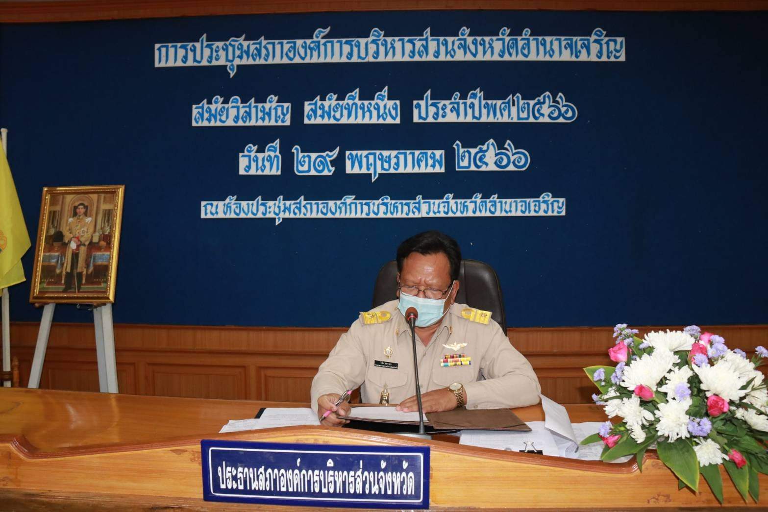 29 พ.ค. 2566 เวลา 10.00 น. นางสาววันเพ็ญ ตั้งสกุล นายก อบจ.อำนาจเจริญ พร้อมด้วยคณะผู้บริหาร และหัวหน้าส่วนราชการ เข้าร่วมการประชุมสภาองค์การบริหารส่วนจังหวัดอำนาจเจริญ สมัยวิสามัญ สมัยที่หนึ่ง ประจำปี พ.ศ. 2566 ณ ห้องประชุมสภาองค์การบริหารส่วนจังหวัดอำนาจเจริญ โดยมีนายวิชัย แสวงสุข ประธานสภา อบจ อำนาจเจริญ เป็นประธานการประชุมสภาองค์การบริหารส่วนจังหวัดอำนาจเจริญ สมัยวิสามัญ สมัยที่หนึ่ง ประจำปี พ.ศ. 2566 โดยมีสมาชิกสภาองค์การบริหารส่วนจังหวัดอำนาจเจริญ เข้าร่วมประชุมในครั้งนี้