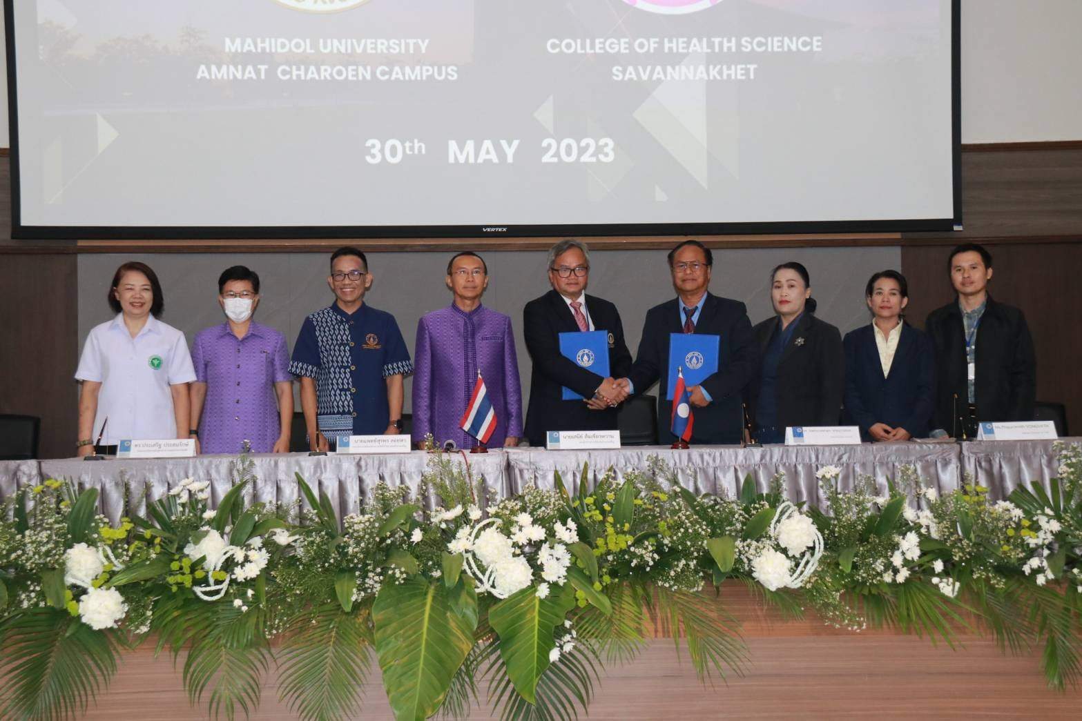 วันที่ 30 พฤษภาคม 2566 เวลา 09.00 น. นางสาววันเพ็ญ ตั้งสกุล นายก อบจ.อำนาจเจริญ ร่วมพิธีลงนามบันทึกข้อตกลงความร่วมมือทางวิชาการ (MOU) ระหว่างโครงการจัดตั้งวิทยาเขตอำนาจเจริญ มหาวิทยาลัยมหิดล กับ วิทยาศาสตร์สุขภาพสะหวันเขต สาธารณรัฐประชาธิปไตยประชาชนลาว โดยมีวัตถุประสงค์เพื่อสร้างความร่วมมือในด้านวิชาการ บริการวิชาการ ตลอดจนแลกเปลี่ยนและถ่ายทอดองค์ความรู้ทางวิชาการร่วมกันระหว่างหน่วยงานและระหว่างประเทศ ณ อาหารศูนย์กรเรียนรู้ชุมชนและวิจัยด้านสิ่งแวดล้อม มหาวิทยาลัยมหิดล วิทยาเขตอำนาจเจริญ จังหวัดอำนาจเจริญ