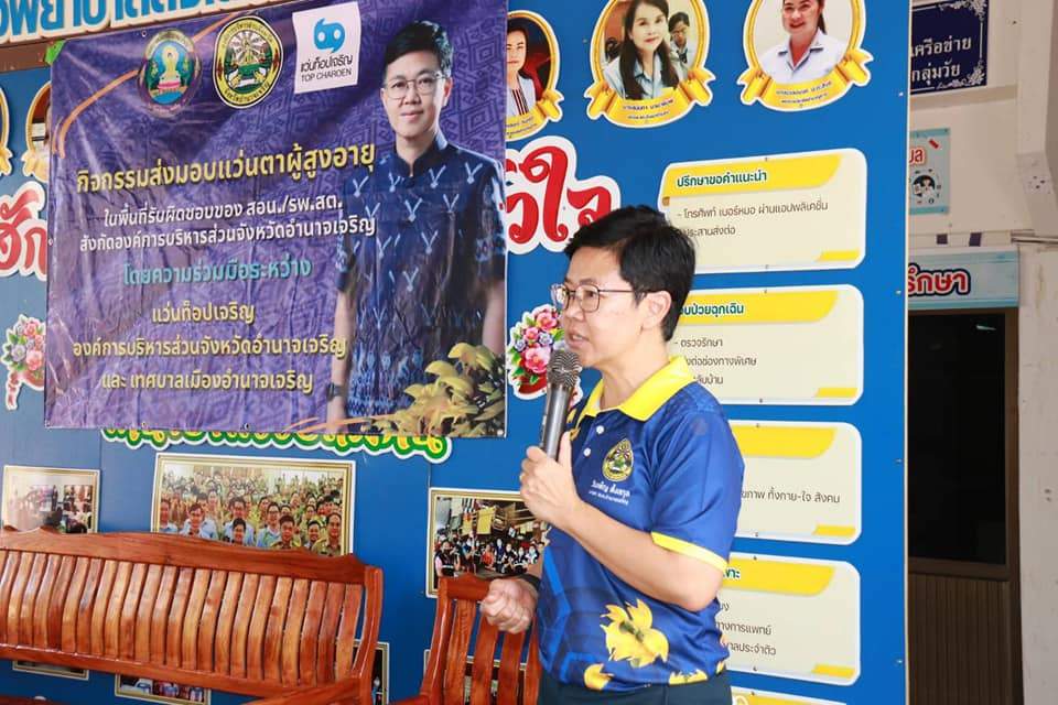 18 เมษายน 2566 นางสาววันเพ็ญ ตั้งสกุล นายกองค์การบริหารส่วนจังหวัดอำนาจเจริญ นางสาวชัญชดา สายมงคล และนายวิฑูรย์ ชาวโพนทอง สมาชิกสภา อบจ.อจ. พร้อมด้วยที่ปรึกษานายก อบจ.อำนาจเจริญ ผู้อำนวยการกองสาธารณสุข ผู้อำนวยการ รพ.สต. และเจ้าหน้าที่ในสังกัด ร่วมส่งมอบแว่นตาให้แก่ผู้สูงอายุในพี้นที่รับผิดชอบ ของ สอน. / รพ.สต. เพื่อเพิ่มประสิทธิภาพการมองเห็นใช้ชีวิตให้มีความสุขมากขึ้น ของผู้สูงอายุในพื้นที่ อำเภอชานุมาน จำนวน 60 ราย อำเภอเสนางคนิคม จำนวน 54 ราย